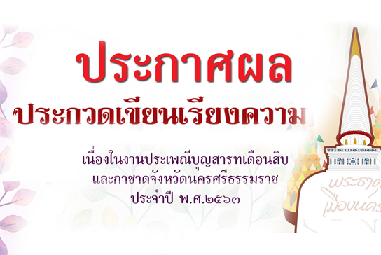 ผลการประกวดเขียนเรียงความเนื่องในงานประเพณีบุญสารทเดือนสิบ ประจำปี ๒๕๖๓ Read More »