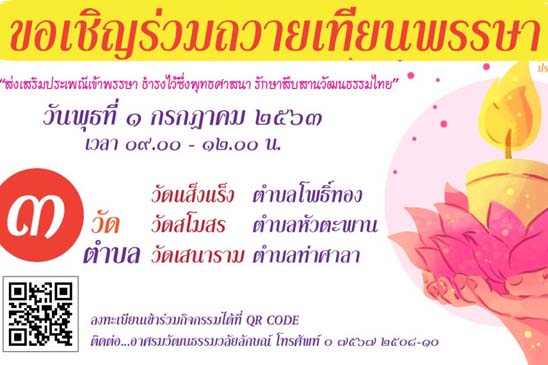 ขอเชิญชวนเข้าร่วมกิจกรรมถวายเทียนพรรษา ประจำปี พ.ศ. 256