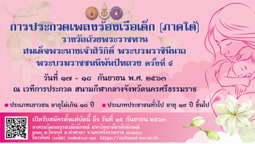ขอเชิญร่วมประกวดเพลงร้องเรือเด็ก (ภาคใต้) รางวัลถ้วยพระราชทานสมเด็จพระนางเจ้าสิริกิติ์ พระบรมราชินีนาถ พระบรมราชชนนีพันปีหลวง ครั้งที่ ๔