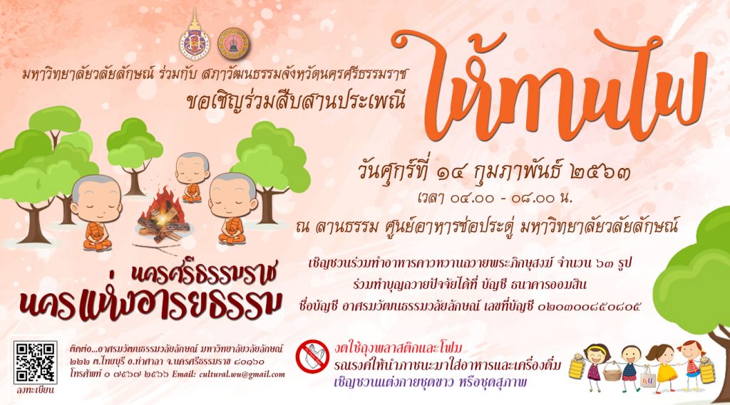 อาศรมวัฒนธรรมวลัยลักษณ์ มหาวิทยาลัยวลัยลักษณ์ ขอเชิญทุก