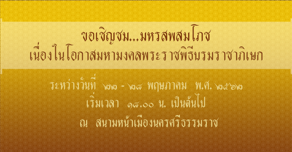 จังหวัดนครศรีธรรมราชขอเชิญชมมหรสพสมโภช เนื่องในโอกาสมหา