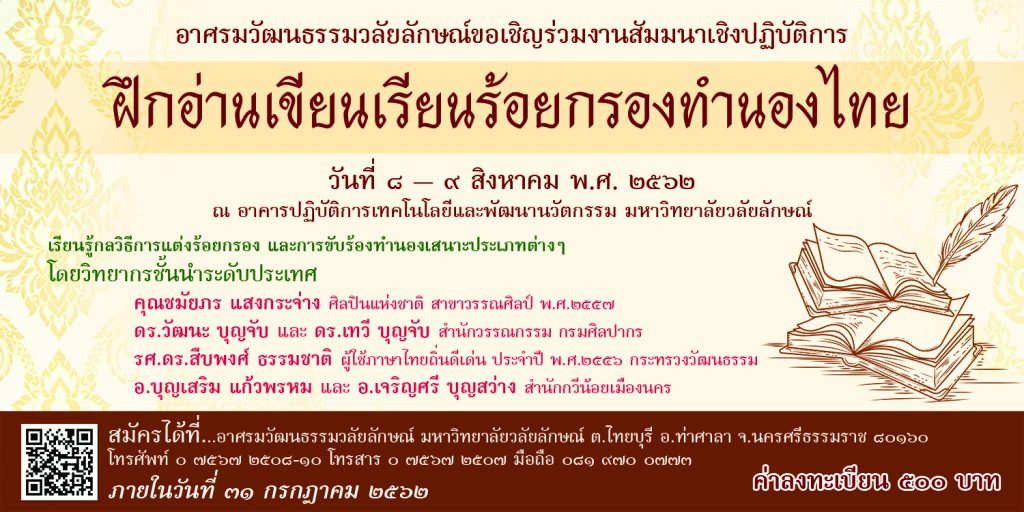 อาศรมวัฒนธรรมวลัยลักษณ์ ขอเชิญเข้าร่วมสัมมนาเชิงปฏิบัติ