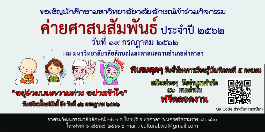 ขอเชิญนักศึกษามหาวิทยาลัยวลัยลักษณ์เข้าร่วมกิจกรรม ค่าย