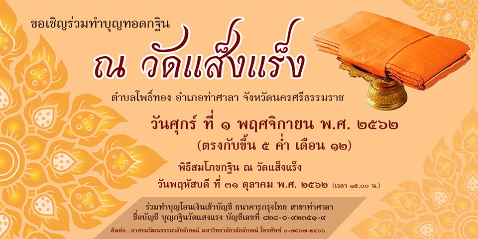 มหาวิทยาลัยวลัยลักษณ์ ขอเชิญชวนสาธุชนและผู้มีจิตกุศลร่ว