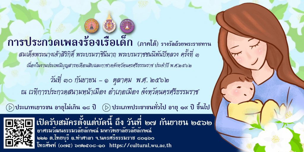 ขอเชิญร่วมประกวดเพลงร้องเรือเด็ก (ภาคใต้) รางวัลถ้วยพระราชทานสมเด็จพระนางเจ้าสิริกิติ์ พระบรมราชินีนาถ พระบรมราชชนนีพันปีหลวง ครั้งที่ ๓