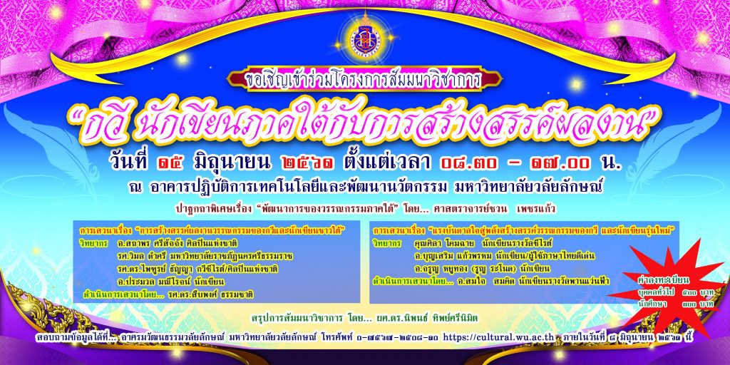 มหาวิทยาลัยวลัยลักษณ์ โดยอาศรมวัฒนธรรมวลัยลักษณ์ ขอเชิญ