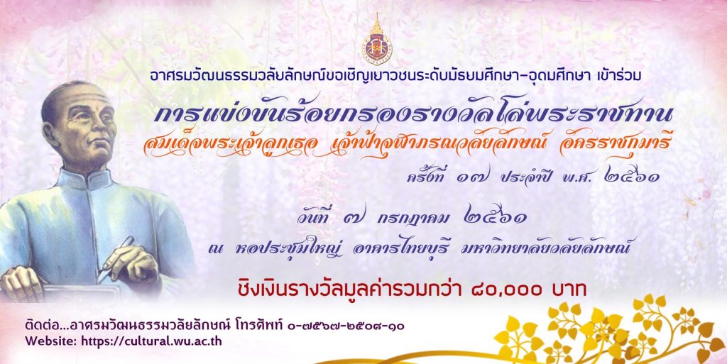 อาศรมวัฒนธรรมวลัยลักษณ์ขอเชิญร่วมกิจกรรมการประกวดแข่งขั