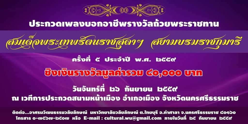 ด้วยมหาวิทยาลัยวลัยลักษณ์ กำหนดจัดประกวดขับร้องเพลงไทยล