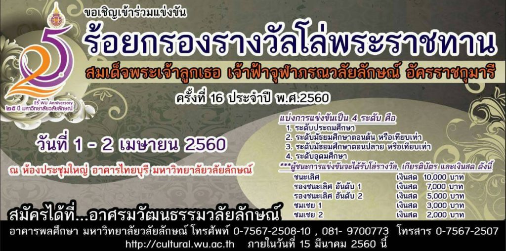 อาศรมวัฒนธรรมวลัยลักษณ์ ขอเชิญเข้าร่วมการประกวดแข่งขันด