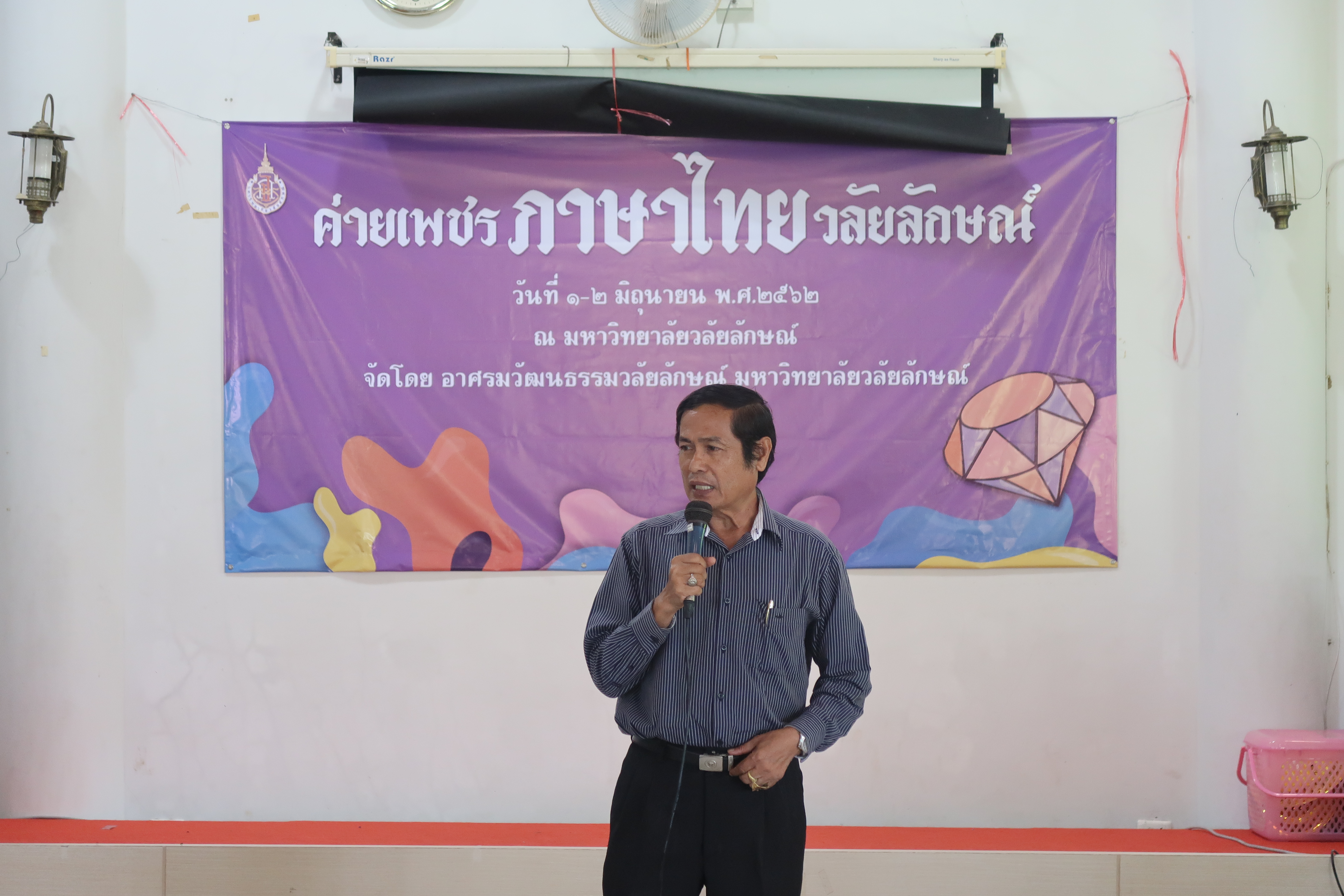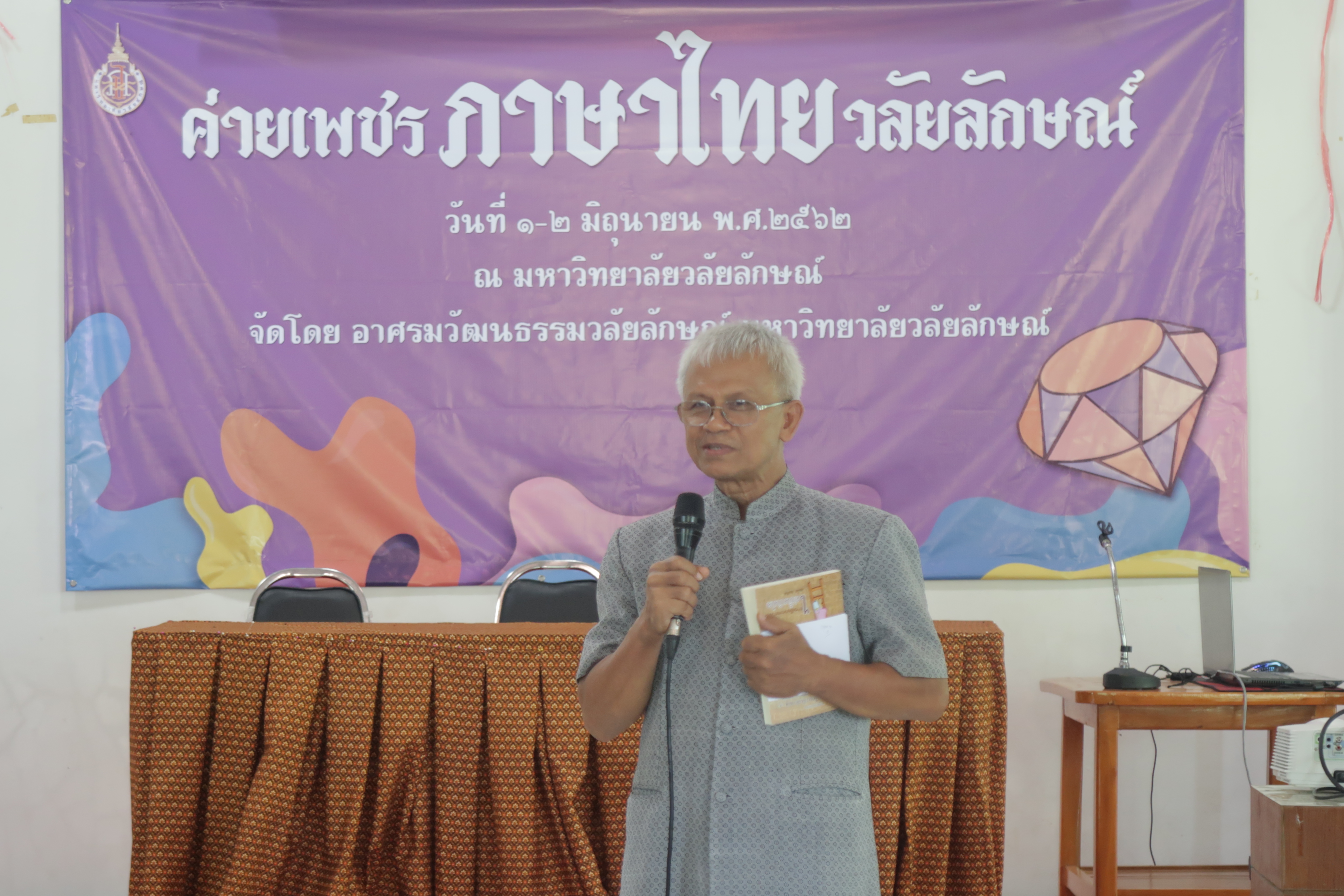 เมื่อวันที่ ๑ – ๒ มิถุนายน พ.ศ. ๒๕๖๒ ที่ผ่านมา อาศรมวัฒนธรรมวลัยลักษณ์ มหาวิทยาลัยวลัยลักษณ์ จัดค่ายเพชรภาษาไทยวลัยลักษณ์ รุ่นที่ ๑ ณ อุทยานพฤกษศาสตร์ มหาวิทยาลัยวลัยลักษณ์เพื่อเสริมสร้างความรู้ประสบการณ์ พัฒนาทักษะ และสร้างสำนึกรักการเขียนให้เกิดขึ้นในกลุ่มเยาวชน ส่งเสริมให้พัฒนาแนวคิด ค่านิยม และขีดความสามารถในด้านการเขียนเชิงสร้างสรรค์ และการบริการวิชาการแก่สังคม เป็นกิจกรรมที่มุ่งสร้างบุคลากรที่มีคุณภาพด้านภาษาและวรรณกรรมในด้านการเขียนออกไปรับใช้สังคมให้มีความเข้มแข็งและเกิดคุณค่าสืบไป