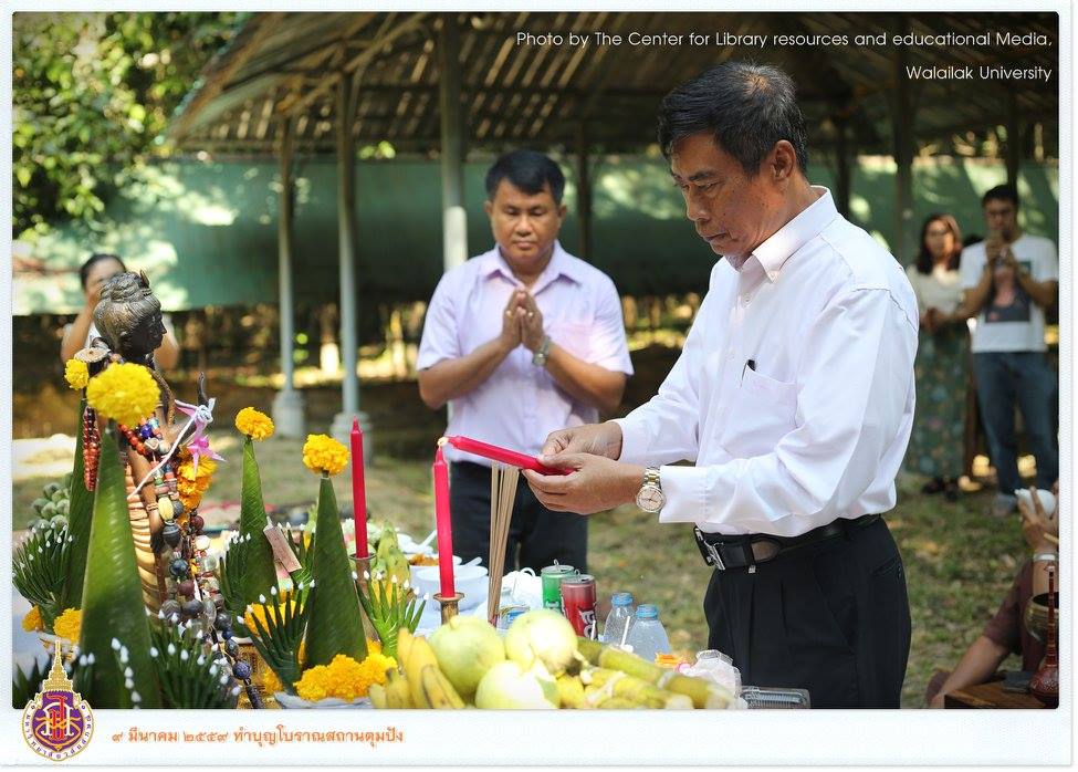 เมื่อวันพุธที่ ๙ มีนาคม ๒๕๕๙ มหาวิทยาลัยวลัยลักษณ์ โดยอาศรมวัฒนธรรมวลัยลักษณ์จัดงานทำบุญทวดตุมปัง ประจำปี ๒๕๕๙ ณ โบราณสถานตุมปัง เพื่อส่งเสริม ปลูกฝัง คุณค่าด้านคุณธรรมจริยธรรม และกระตุ้นให้นักศึกษาและบุคลากรได้เล็งเห็นถึงคุณค่าของแหล่งโบราณสถาน เรียนรู้ด้านประวัติศาสตร์และโบราณคดีที่สำคัญของจังหวัดนครศรีธรรมราช ซึ่งได้รับเกียรติจากนายพีระศักดิ์ หินเมืองเก่า ผู้ว่าราชการจังหวัดนครศรีธรรมราช และภริยา และคณะมาเยี่ยมชมโบราณสถาน พร้อมด้วยแขกผู้มีเกียรติ อาทิ นายถาวรรัตน์ คงแก้ว ปลัดจังหวัดนครศรีธรรมราช , นายณรงค์ แก้วนพรัตน์ ปลัดอำเภอท่าศาลาผู้แทนนายอำเภอท่าศาลา, พ.อ.ชัยพิพัฒน์ รันสูงเนิน มณฑลทหารบกที๔๑ ผู้แทน พล.ต.ธีรณ์ฉัตร จินดาเงิน ผบ.มทบ.๔๑, พ.ต.อ.สำเริง ชูกะนันท์ ผกก.สภ.ท่าศาลา จ.นครศรีธรรมราช, สำนักศิลปากรที่ ๑๔ นครศรีธรรมราช, หอสมุดแห่งชาตินครศรีธรรมราช, องค์การบริหารส่วนตำบลท่าศาลา, สำนักงานวัฒนธรรมจังหวัดนครศรีธรรมราช, องค์การบริหารส่วนตำบลไทยบุรี, ธนาคารออมสิน สาขา ม.วลัยลักษณ์, คณะครูนักเรียนโรงเรียนชุมชนใหม่ ตลอดถึงคณะผู้บริหาร อาจารย์ นักศึกษา และบุคลากรมหาวิทยาลัยวลัยลักษณ์มาร่วมทำบุญทวดตุมปังในครั้งนี้