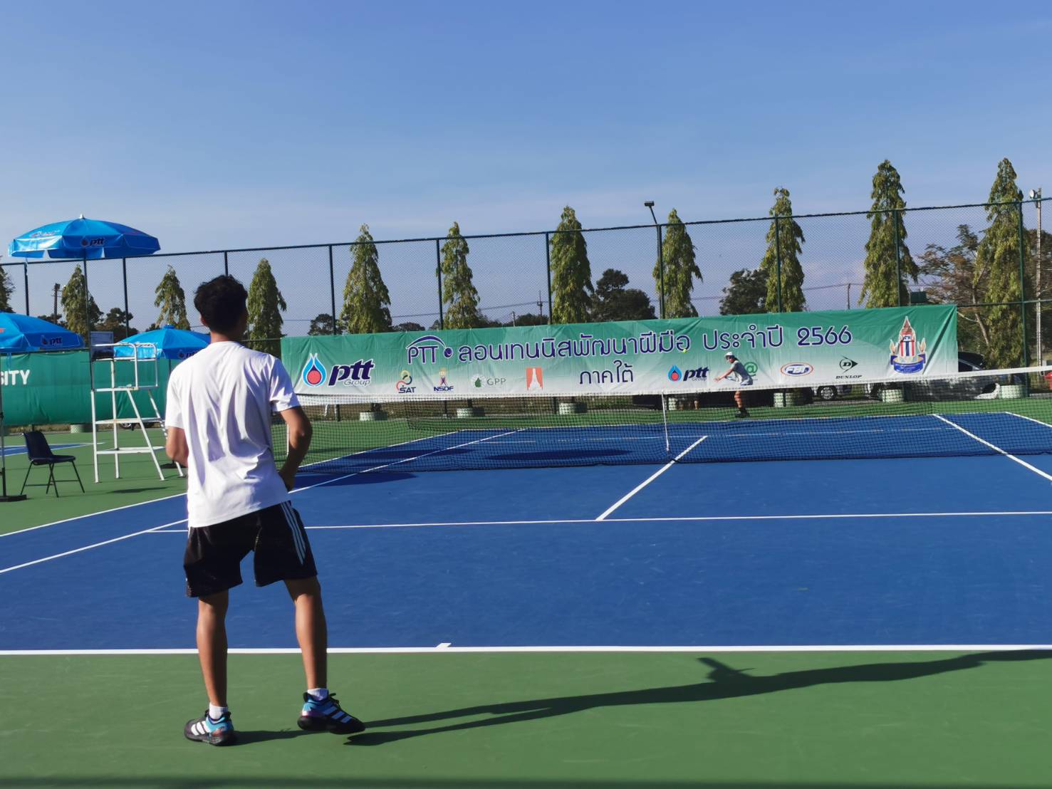 อธิการบดี (ศ.ดร.สมบัติ ธำรงธัญวงศ์) ร่วมชมการแข่งขัน "PTT - ลอนเทนนิสเยาวชนพัฒนาฝีมือภาคใต้" ครั้งที่ 3