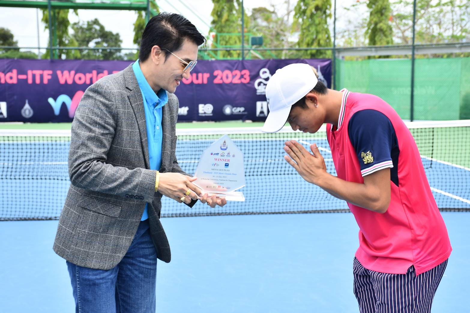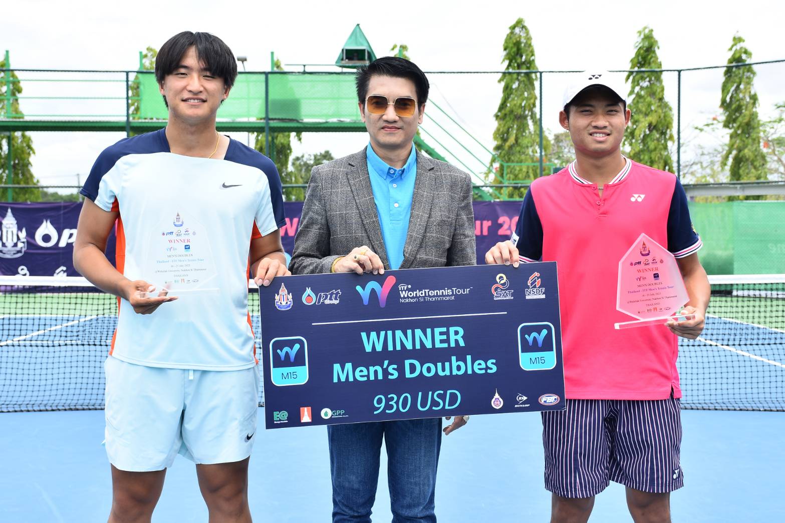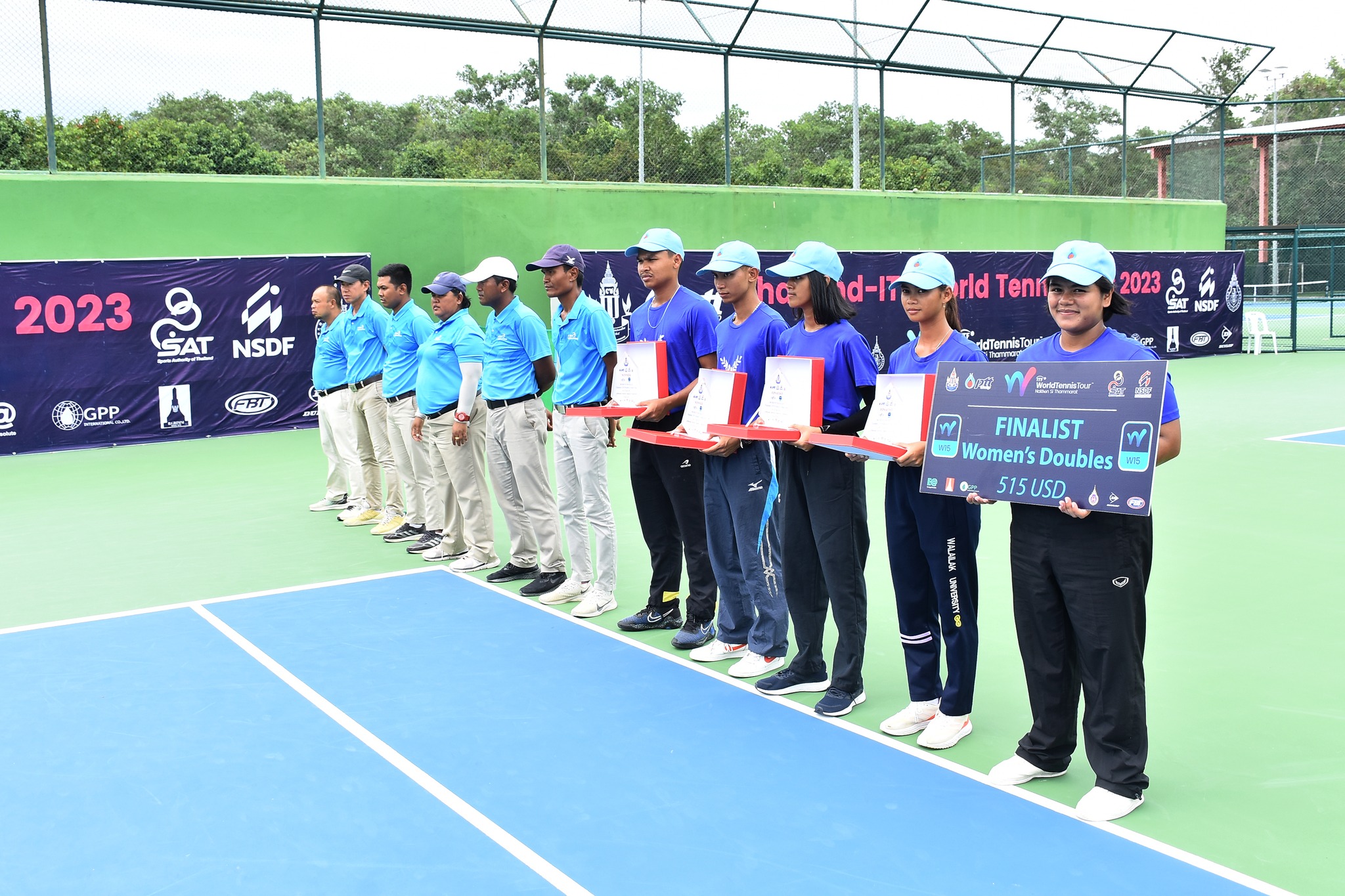 จบลงแล้วสำหรับการแข่งขันสัปดาห์สุดท้ายในรอบที่ 2 ของการแข่งขันเทนนิสนานาชาติ ไอทีเอฟ เวิลด์ เทนนิส ทัวร์ 2023 ในวันเสาร์ที่ 22 กรกฎาคม 2566 รศ.ดร.วรวุฒิ สมศักดิ์ รักษาการแทนรองอธิการบดี ม.วลัยลักษณ์ ให้เกียรติเป็นประธานในพิธีมอบรางวัล ร่วมด้วย ดร.มงคล ธีระนานนท์ รักษาการแทนผู้ช่วยอธิการบดี ม.วลัยลักษณ์ และมี ผศ.ดร.มาริสา ภูมิภาค ณ หนองคาย รักษาการแทนผู้อำนวยการศูนย์ส่งเสริมวัฒนธรรมและการกีฬา ร่วมในพิธี ในการแข่งขันเทนนิสนานาชาติ ไทยแลนด์-ไอทีเอฟ เวิลด์ เทนนิส ทัวร์ 2023 และในวันอาทิตย์ที่ 23 กรกฏาคม 2566 ท่านอธิการบดี ศ.ดร.สมบัติ ธำรงธัญวงศ์ ให้เกียรติร่วมชมการแข่งขันและได้รับเกียรติจาก ผศ.ดร.ผดุงศักดิ์ สุขสอาด รักษาการแทนรองอธิการบดี ม.วลัยลักษณ์ มอบโล่และป้ายเงินรางวัลแก่นักกีฬา ร่วมด้วย ผศ.ดร.มาริสา ภูมิภาค ณ หนองคาย รักษาการแทนผู้อำนวยการศูนย์ส่งเสริมวัฒนธรรมและการกีฬา ม.วลัยลักษณ์ ร่วมในพิธีด้วย ท่ามกลางบรรยากาศชื่นมื่นและความสวยงามของพื้นที่รอบสนาม ในรายการแข่งขันเทนนิสนานาชาติ ไทยแลนด์-ไอทีเอฟ เวิลด์ เทนนิส ทัวร์ 2023 สัปดาห์ที่ 6 เทนนิสชาย “ไทยแลนด์ – ไอทีเอฟ เมนส์ เทนนิส ทัวร์” และเทนนิสหญิง “ไทยแลนด์ – ไอทีเอฟ วีเมนส์ เทนนิส ทัวร์” ชิงเงินรางวัลรวม รายการละ 15,000 ดอลลาร์สหรัฐ หรือประมาณ 543,150 บาท รวม 2 รายการอยู่ที่ 1,086,300 บาท ณ สนามเทนนิส ภายในสนามกีฬากลางตุมปัง มหาวิทยาลัยวลัยลักษณ์ จังหวัดนครศรีธรรมราช ซึ่งเป็นการแข่งขันวันสุดท้าย