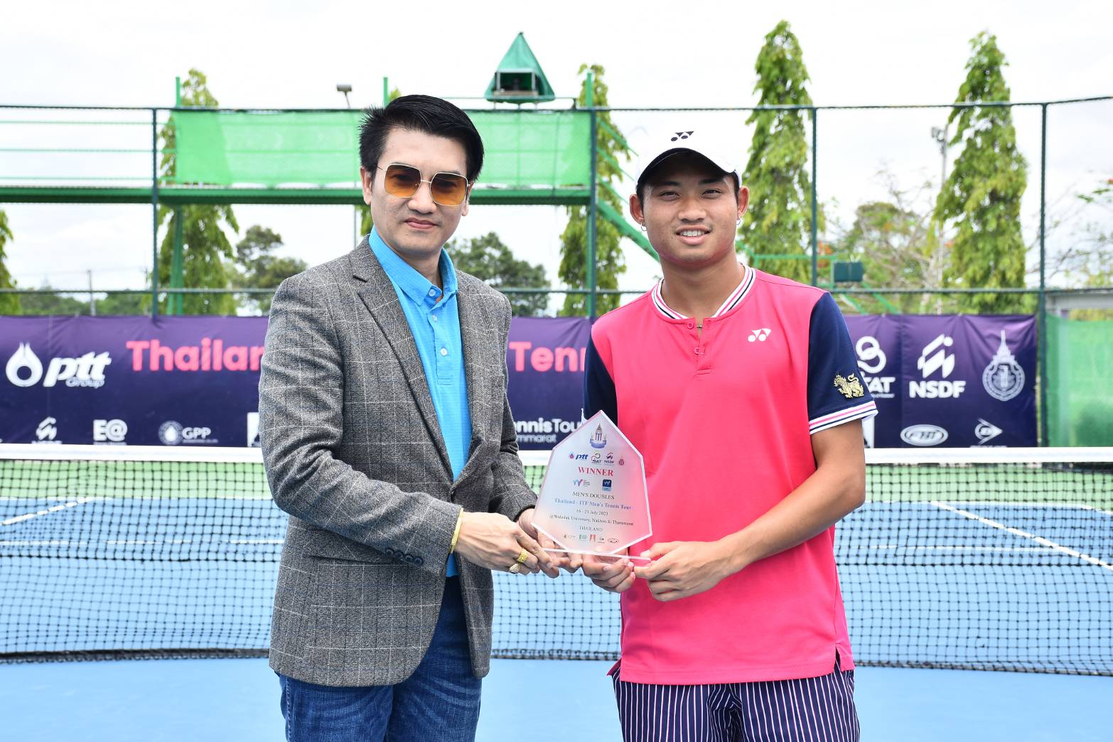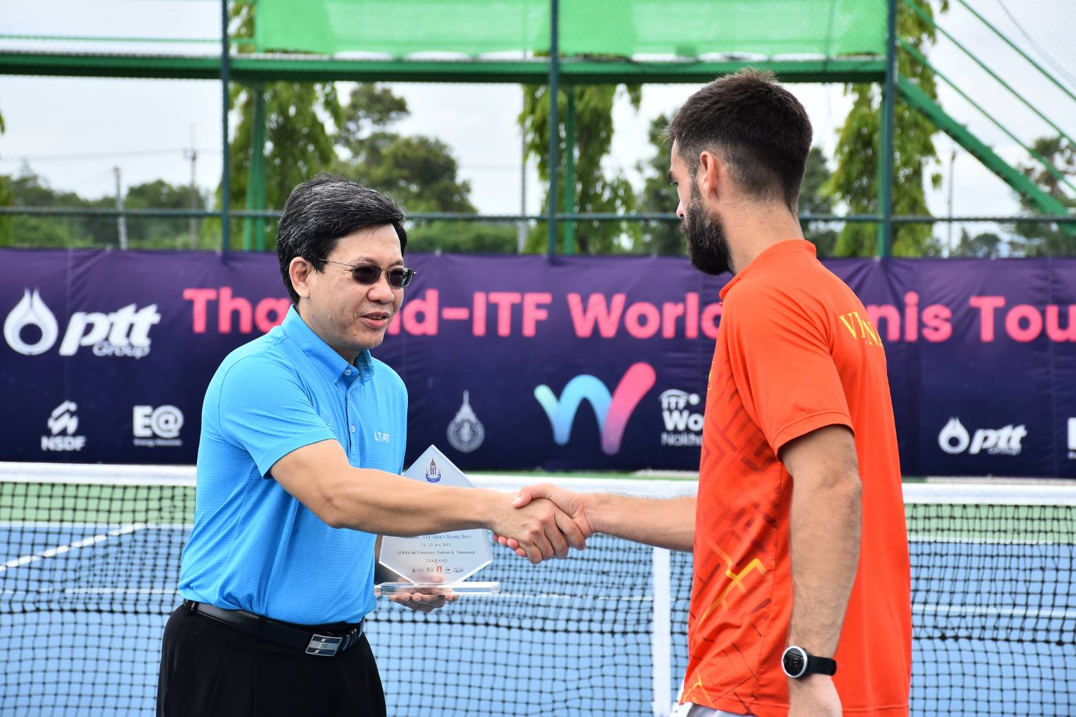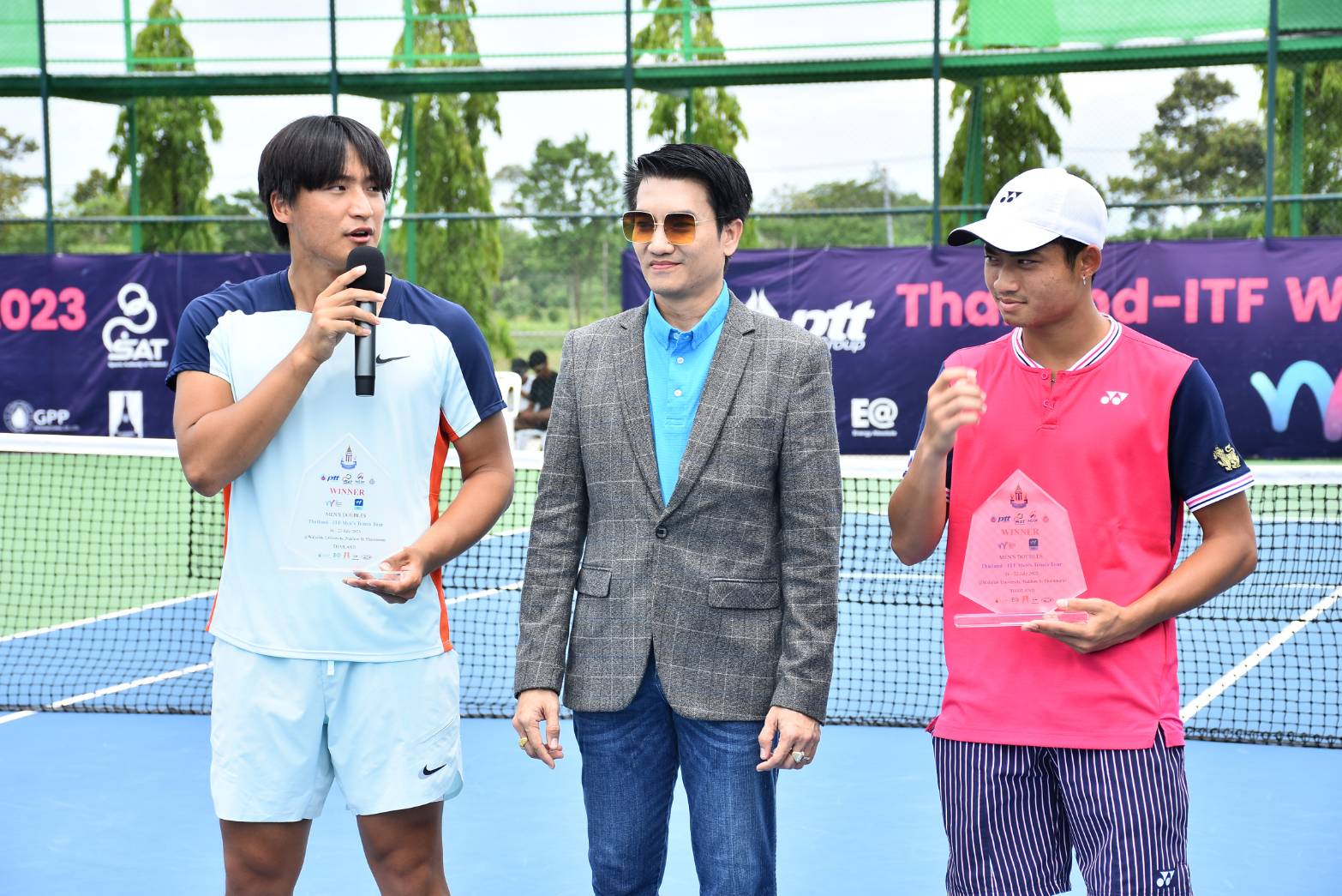 จบลงแล้วสำหรับการแข่งขันสัปดาห์สุดท้ายในรอบที่ 2 ของการแข่งขันเทนนิสนานาชาติ ไอทีเอฟ เวิลด์ เทนนิส ทัวร์ 2023 ในวันเสาร์ที่ 22 กรกฎาคม 2566 รศ.ดร.วรวุฒิ สมศักดิ์ รักษาการแทนรองอธิการบดี ม.วลัยลักษณ์ ให้เกียรติเป็นประธานในพิธีมอบรางวัล ร่วมด้วย ดร.มงคล ธีระนานนท์ รักษาการแทนผู้ช่วยอธิการบดี ม.วลัยลักษณ์ และมี ผศ.ดร.มาริสา ภูมิภาค ณ หนองคาย รักษาการแทนผู้อำนวยการศูนย์ส่งเสริมวัฒนธรรมและการกีฬา ร่วมในพิธี ในการแข่งขันเทนนิสนานาชาติ ไทยแลนด์-ไอทีเอฟ เวิลด์ เทนนิส ทัวร์ 2023 และในวันอาทิตย์ที่ 23 กรกฏาคม 2566 ท่านอธิการบดี ศ.ดร.สมบัติ ธำรงธัญวงศ์ ให้เกียรติร่วมชมการแข่งขันและได้รับเกียรติจาก ผศ.ดร.ผดุงศักดิ์ สุขสอาด รักษาการแทนรองอธิการบดี ม.วลัยลักษณ์ มอบโล่และป้ายเงินรางวัลแก่นักกีฬา ร่วมด้วย ผศ.ดร.มาริสา ภูมิภาค ณ หนองคาย รักษาการแทนผู้อำนวยการศูนย์ส่งเสริมวัฒนธรรมและการกีฬา ม.วลัยลักษณ์ ร่วมในพิธีด้วย ท่ามกลางบรรยากาศชื่นมื่นและความสวยงามของพื้นที่รอบสนาม ในรายการแข่งขันเทนนิสนานาชาติ ไทยแลนด์-ไอทีเอฟ เวิลด์ เทนนิส ทัวร์ 2023 สัปดาห์ที่ 6 เทนนิสชาย “ไทยแลนด์ – ไอทีเอฟ เมนส์ เทนนิส ทัวร์” และเทนนิสหญิง “ไทยแลนด์ – ไอทีเอฟ วีเมนส์ เทนนิส ทัวร์” ชิงเงินรางวัลรวม รายการละ 15,000 ดอลลาร์สหรัฐ หรือประมาณ 543,150 บาท รวม 2 รายการอยู่ที่ 1,086,300 บาท ณ สนามเทนนิส ภายในสนามกีฬากลางตุมปัง มหาวิทยาลัยวลัยลักษณ์ จังหวัดนครศรีธรรมราช ซึ่งเป็นการแข่งขันวันสุดท้าย
