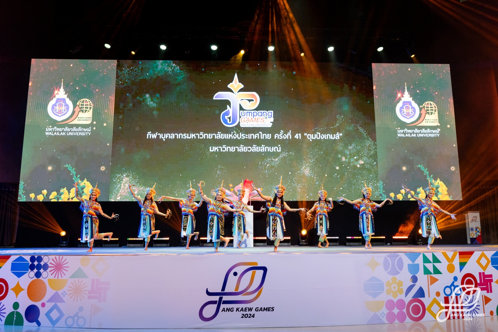 วันที่ 9 มิถุนายน 2567 นักศึกษาชมนาฏศิลป์มหาวิทยาลัยวลัยลักษณ์ ร่วมแสดงในพิธีรับมอบธงการแข่งขันกีฬาบุคลากรมหาวิทยาลัยแห่งประเทศไทยเพื่อเป็นเจ้าภาพในปีถัดไป กีฬาบุคลากรมหาวิทยาลัยแห่งประเทศไทย ครั้งที่ 41 “ตุมปังเกมส์ 2025” ณ มหาวิทยาลัยวลัยลักษณ์ จังหวัดนครศรีธรรมราช ในชื่อชุด “โนรา นาฏยศิลป์ถิ่นใต้” เป็นการแสดงที่สื่อให้เห็นถึงความเป็นอัตลักษณ์ของภาคใต้ เป็นศาสตร์และศิลป์และมีการผสมผสานอย่างลงตัว