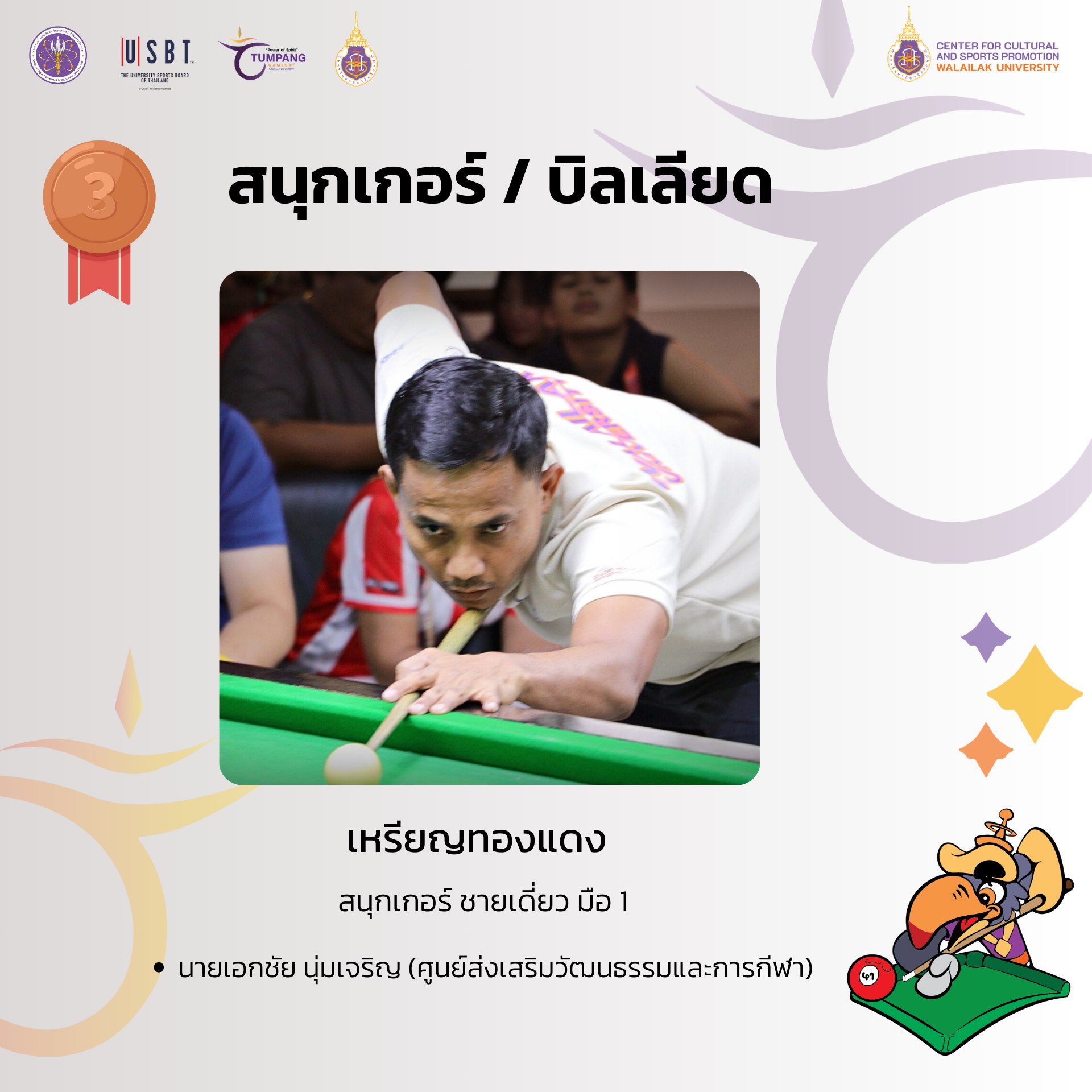 นายเอกชัย นุ่มเจริญ ศูนย์ส่งเสริมวัฒนธรรมและการกีฬา