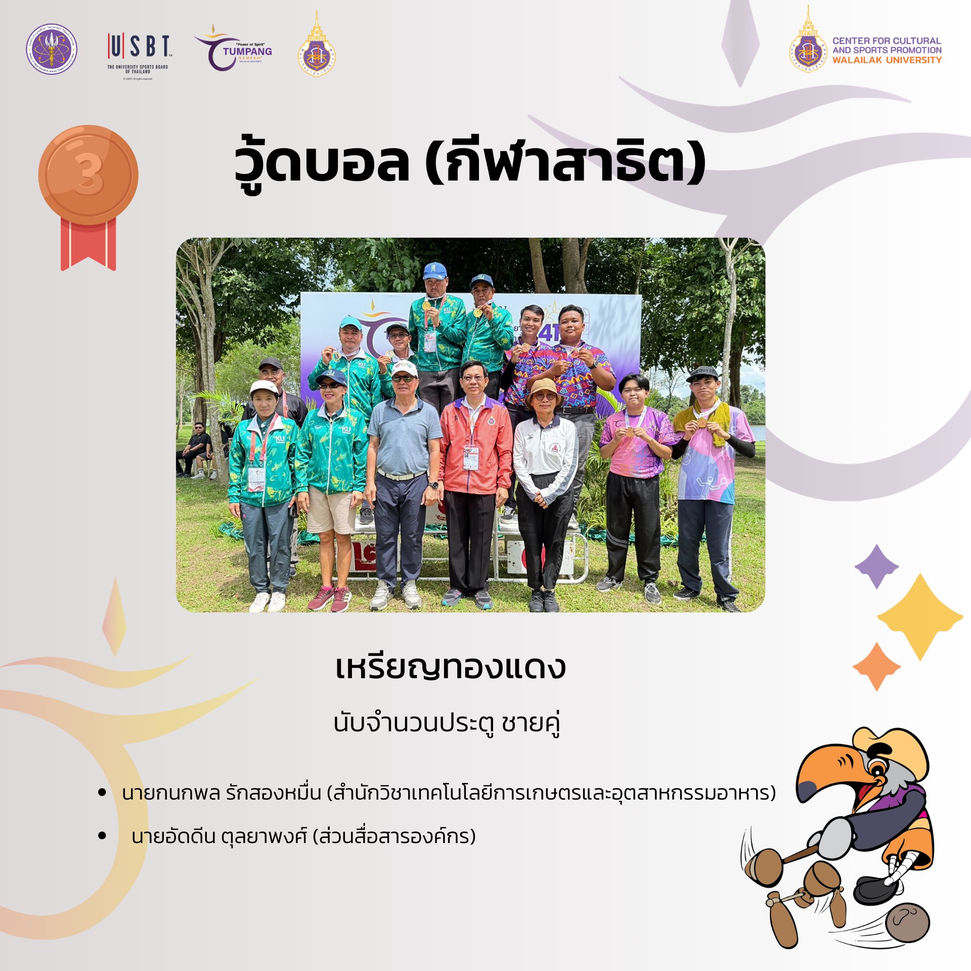 ทัพนักกีฬาม.วลัยลักษณ์เจ้าภาพ คว้า 4 เหรียญทอง 8 เหรียญเงิน 9 เหรียญทองแดง ครองอันดับ 17 “ตุมปังเกมส์”