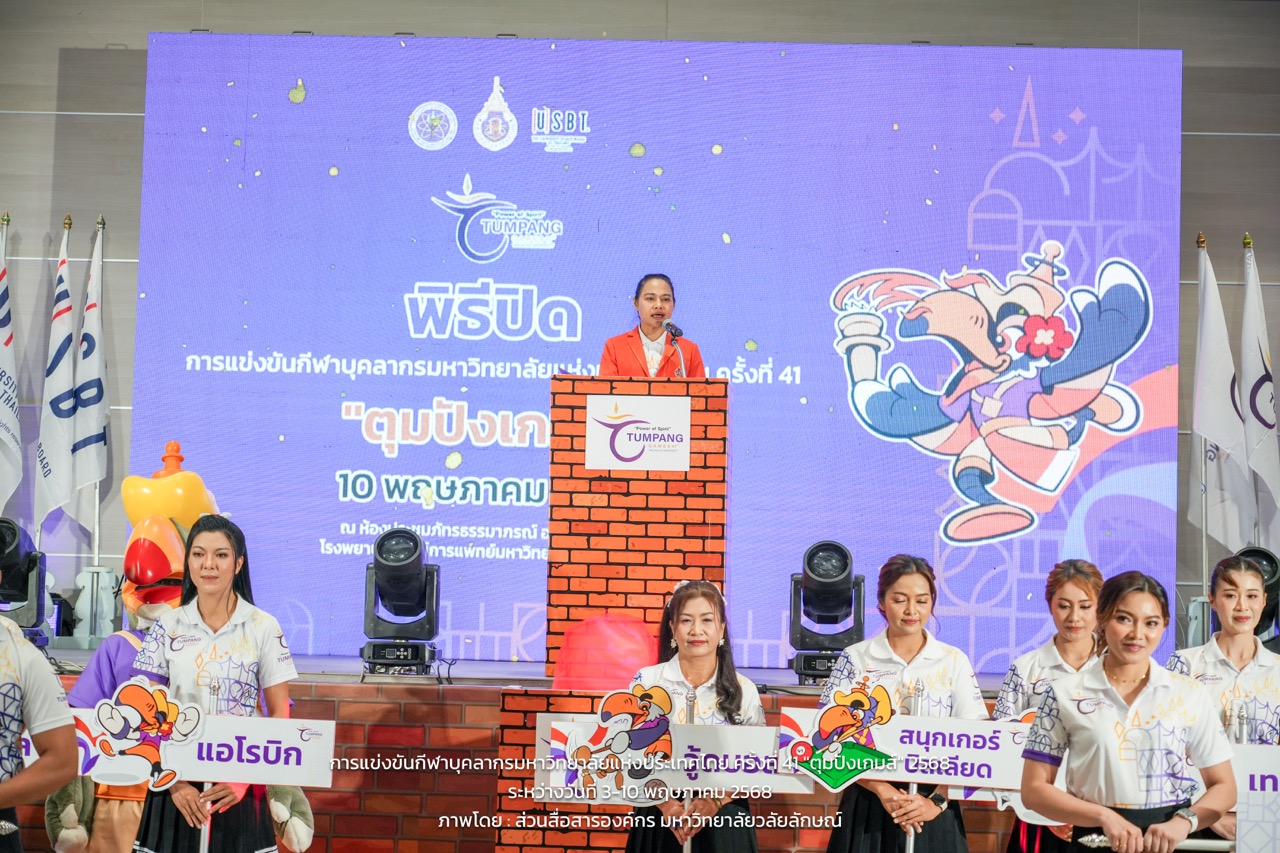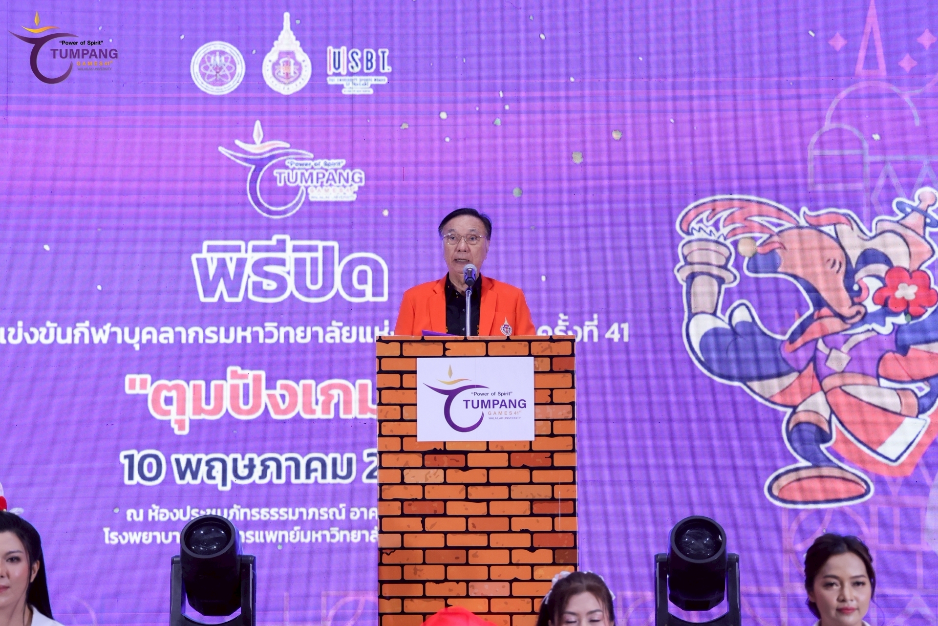 เมื่อวันที่ 10 พฤษภาคม 2568 มหาวิทยาลัยวลัยลักษณ์จัดพิธีปิดการแข่งขันกีฬาบุคลากรมหาวิทยาลัยแห่งประเทศไทย ครั้งที่ 41 “ตุมปังเกมส์” ณ ห้องประชุมภัทรธรรมาภรณ์ ชั้น 9 อาคาร B โรงพยาบาลศูนย์การแพทย์มหาวิทยาลัยวลัยลักษณ์ โดยมีศาสตราจารย์ ดร.สมบัติ ธำรงธัญวงศ์ อธิการบดีมหาวิทยาลัยวลัยลักษณ์ เป็นประธานในพิธีปิด พร้อมด้วยรองศาสตราจารย์ ชูสิทธิ์ ประดับเพ็ชร์ ประธานคณะกรรมการบริหารกีฬาบุคลากรมหาวิทยาลัยแห่งประเทศไทย (กกมท.) ผู้บริหารและบุคลากรเข้าร่วมอย่างพร้อมเพรียง