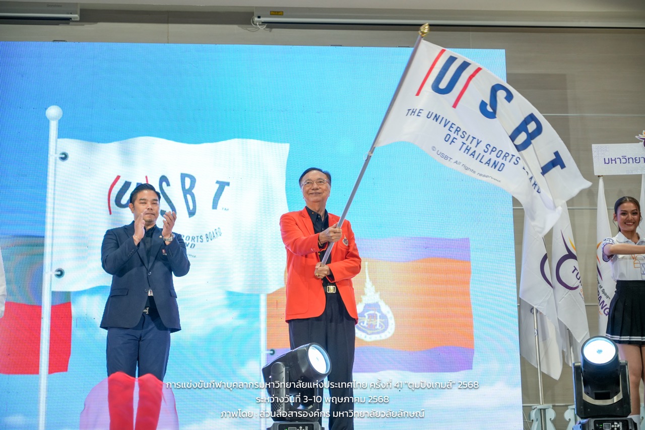จากนั้น ศาสตราจารย์ ดร.สมบัติ ธำรงธัญวงศ์ ได้เป็นประธานในพิธีส่งมอบธงเจ้าภาพให้กับผู้ช่วยศาสตราจารย์ ดร.ชัยวัชร พรหมจิตติพงศ์ รักษาการแทนรองอธิการบดีฝ่ายแผนและยุทธศาสตร์เพื่อสังคม มหาวิทยาลัยศรีนครินทรวิโรฒ ซึ่งจะรับหน้าที่เป็นเจ้าภาพจัดการแข่งขันครั้งถัดไป สำหรับ “ตุมปังเกมส์” ครั้งนี้ ถือเป็นครั้งที่ 3 ที่มหาวิทยาลัยวลัยลักษณ์ได้รับเกียรติเป็นเจ้าภาพ หลังจากเคยจัดการแข่งขันในชื่อ “วลัยลักษณ์เกมส์” มาแล้วในครั้งที่ 25 (พ.ศ. 2549) และครั้งที่ 31 (พ.ศ. 2555)