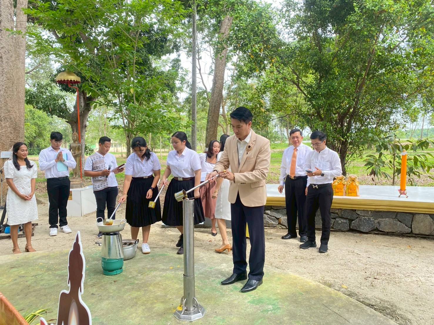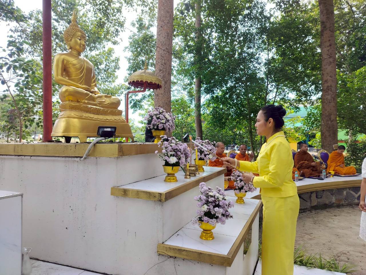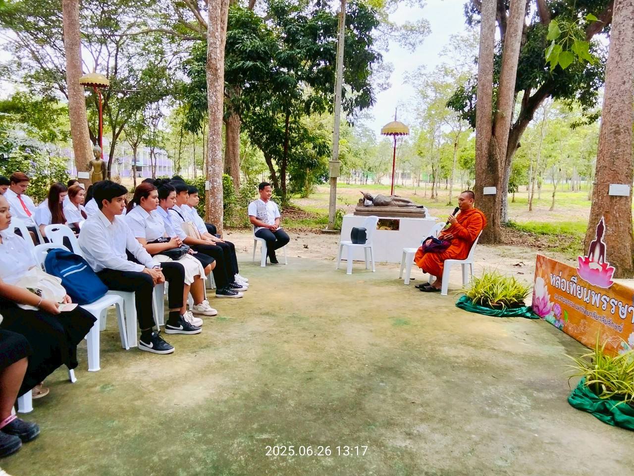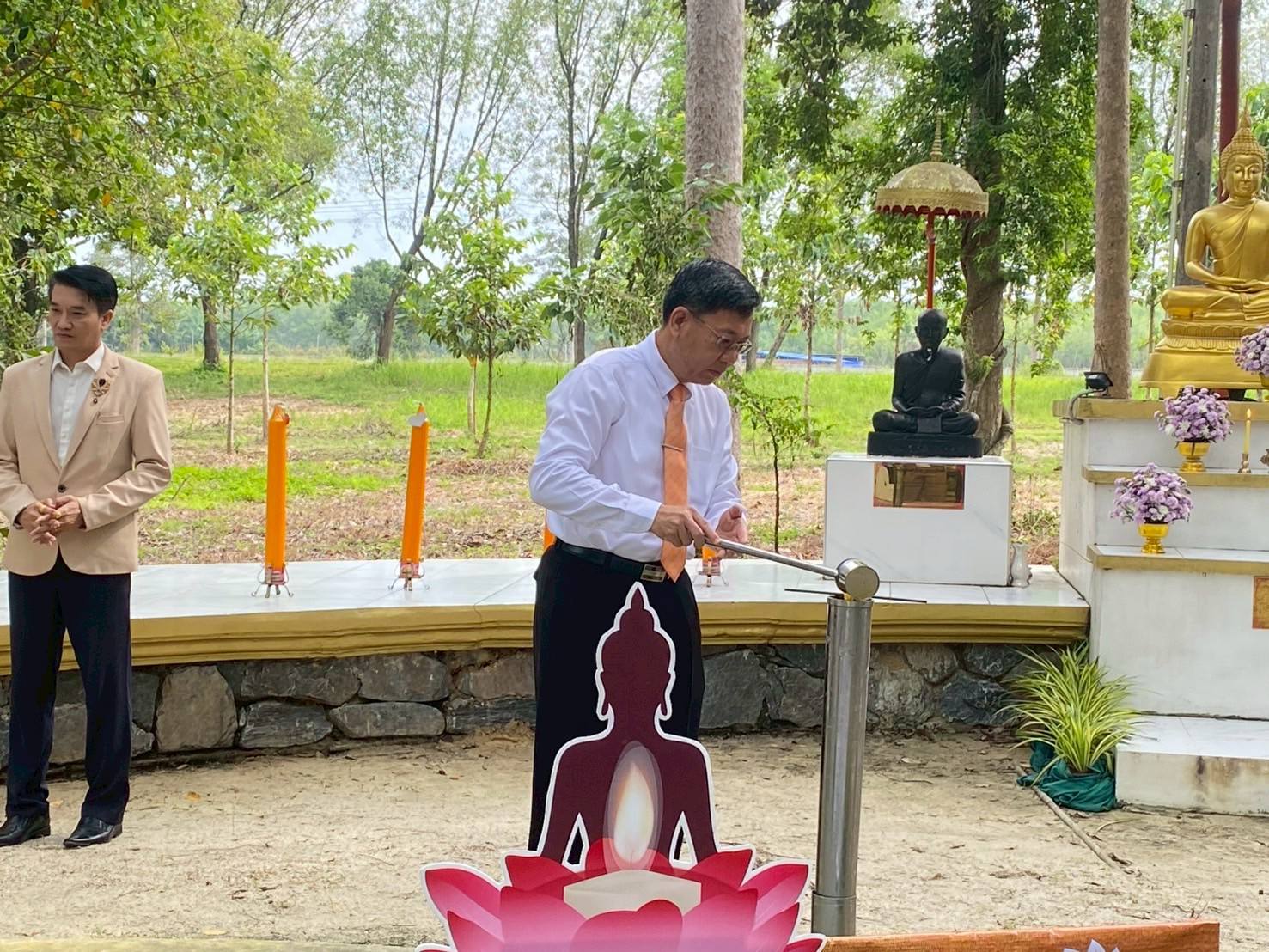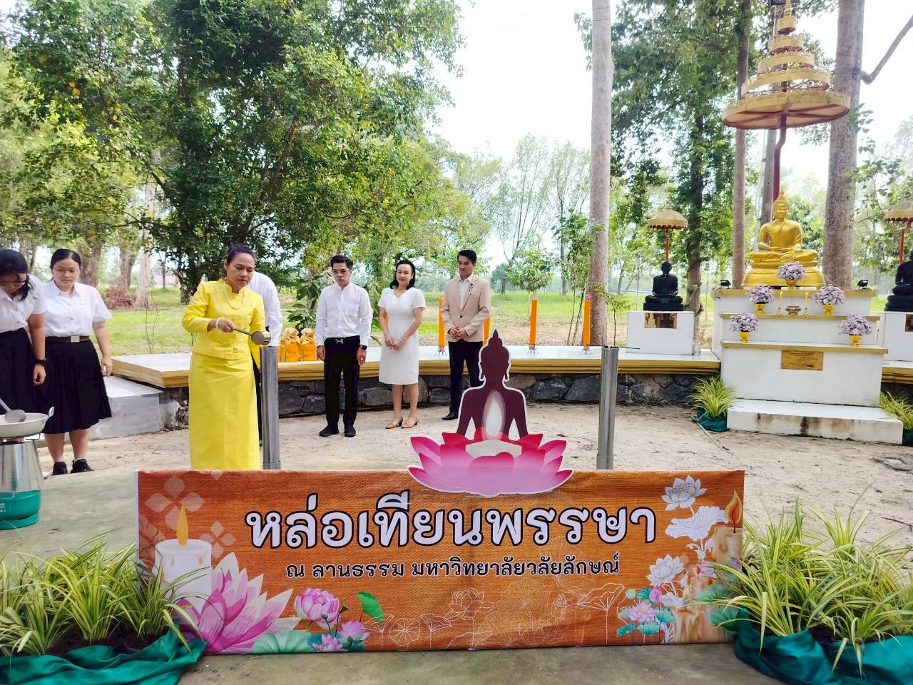 ทั้งนี้ได้รับความเมตตาจาก พระครูชัยธารารักษ์ (มนตรี มนฺตชาโต) เจ้าอาวาสวัดชัยธารามประดิษฐ์ เจ้าคณะตำบลโมคลาน เป็นประธานสงฆ์ และได้รับเกียรติจาก รศ.ดร.อุไร จเรประพาฬ รองอธิการบดี เป็นประธานในพิธี ผศ.ดร.ผดุงศักดิ์ สุขสอาด รองอธิการบดี รศ.ดร.วรวุฒิ สมศักดิ์ คณบดีสำนักวิชาสหเวชศาสตร์ ผศ.ดร.อาทิตย์ บุญรอดชู ผู้ช่วยอธิการบดี ผศ.ดร.มาริสา ภูมิภาค ณ หนองคาย ผู้อำนวยการศูนย์ส่งเสริมวัฒนธรรมและการกีฬา ผู้บริหาร คณาจารย์ บุคลากร และนักศึกษาเข้าร่วมพิธี ซึ่งประกอบไปด้วยพิธีเจริญพระพุทธมนต์ พิธีหล่อเทียนพรรษา และฟังการบรรยายธรรม โดยเมตตาจากพระอาจารย์มนัส เตชวณโณ เจ้าอาวาสวัดประดู่นันทาราม