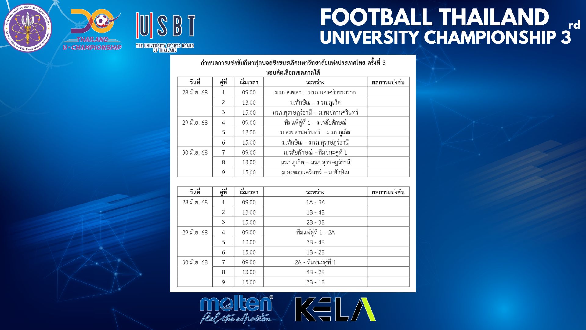 มหาวิทยาลัยวลัยลักษณ์ได้รับเกียรติให้เป็นเจ้าภาพจัดการแข่งขันกีฬาฟุตบอลมหาวิทยาลัยแห่งประเทศไทย ครั้งที่ 3 (Football Thailand U-Championship : 3rd) รอบคัดเลือกภาคใต้ ระหว่างวันที่ 28–30 มิถุนายน 2568 ณ สนามกีฬากลางตุมปัง จังหวัดนครศรีธรรมราช โดยมีทีมฟุตบอลจาก 7 มหาวิทยาลัยภาคใต้เข้าร่วมการแข่งขัน ได้แก่ มหาวิทยาลัยทักษิณ มหาวิทยาลัยราชภัฏสงขลา มหาวิทยาลัยราชภัฏภูเก็ต มหาวิทยาลัยราชภัฏนครศรีธรรมราช มหาวิทยาลัยราชภัฏสุราษฎร์ธานี มหาวิทยาลัยสงขลานครินทร์ และมหาวิทยาลัยวลัยลักษณ์ ตลอดจนกองเชียร์และผู้ติดตามรวมกว่า 1,000 คน