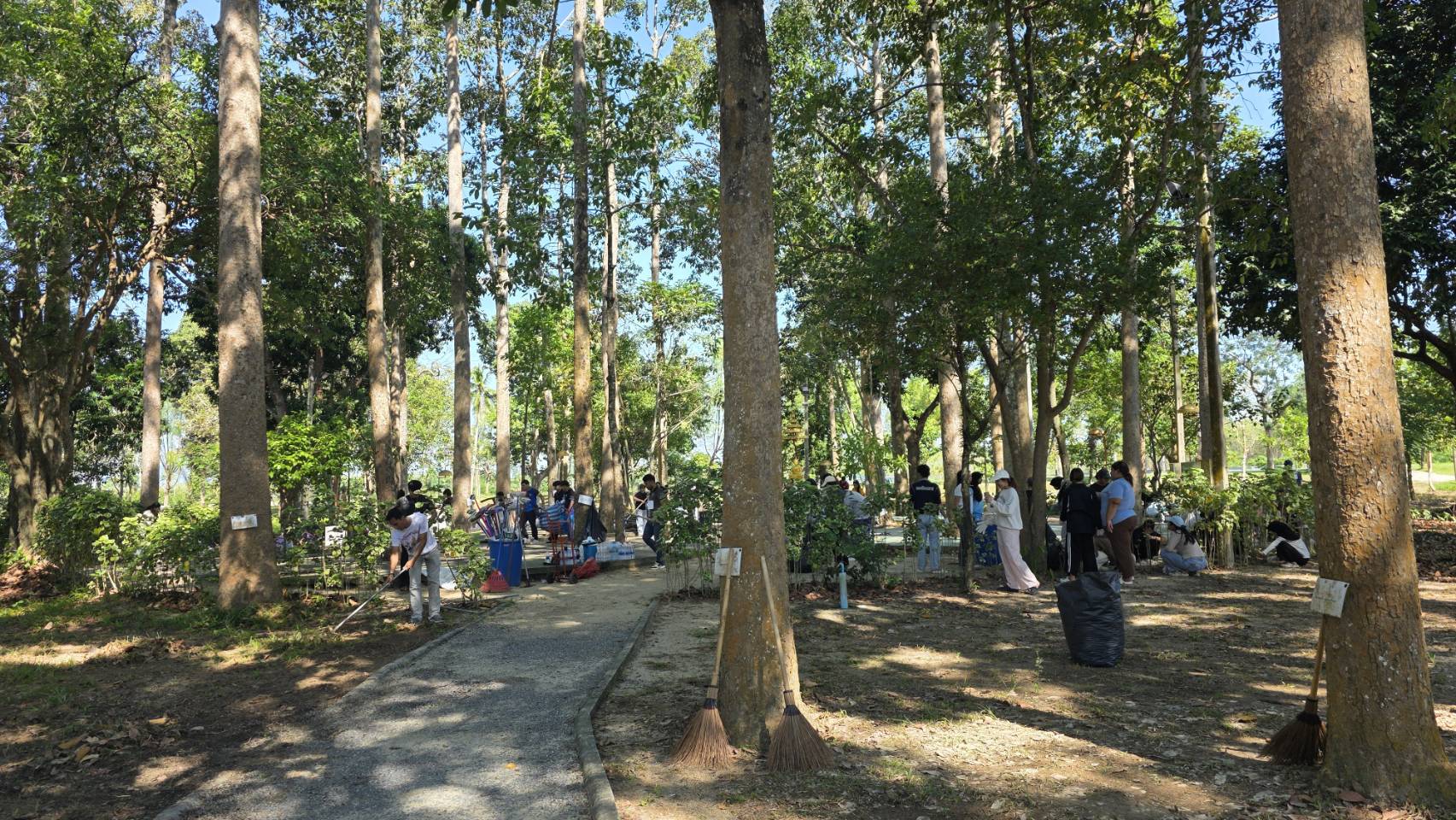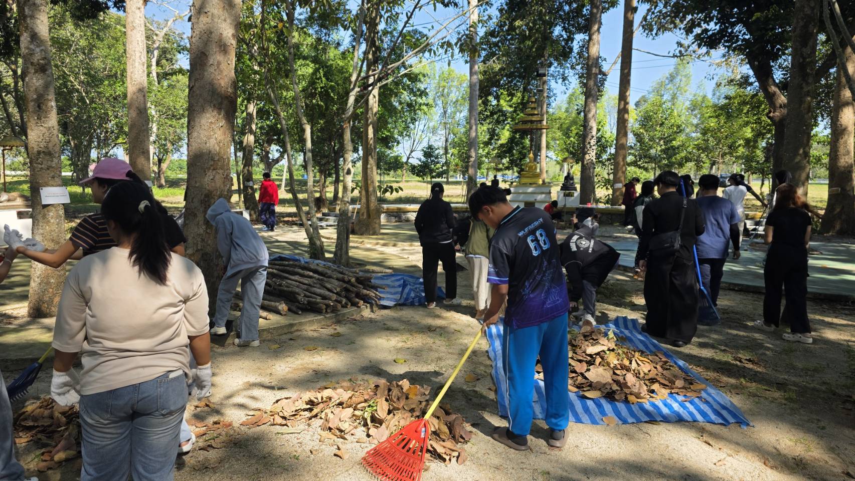 เมื่อ วันอาทิตย์ที่ 21 ธันวาคม 2568 เวลา 8.30-11.30 น. นายพชรพล สินธ์สิริมานะ ประธานชมรมพระพุทธศาสนา พร้อมด้วยที่ปรึกษาชมรม นายสาธิต ขวัญชุม นางสาวชวนพิศ เกื้อมา เจ้าหน้าที่ฝ่ายพัฒนากิจกรรมสร้างสรรค์ และ คณะทำงานชมรมฯ นักศึกษากลุ่ม WU Volunteer รวม 100 คน ทำความสะอาดลานธรรม (ข้างโรงอาหารช่อประดู่) กวาดเก็บใบไม้กิ่งไม้ ถอนวัชพืช และขัดพื้น ให้เป็นระเบียบเรียบร้อย โดยมีวัถุประสงค์ให้นักศึกษาได้เรียนรู้จากการบรรยายธรรม “กวาดใจให้สะอาด” กับการปฎิบัติหน้าที่คือการปฎิบัติธรรม เพิ่มกุศลใจสะอาด เกิดบรรยากาศที่ดี สะท้อนจากภาพการทำงานด้วยใจอาสาหลังหมดเวลาของกิจกรรมแล้วยังมีส่วนร่วมเก็บตกงานอาสาขัดพื้นกวาดเก็บใบไม้ที่กองไว้ และทำความสะอาดจัดเก็บอุปกรณ์ส่งคืนเป็นที่เรียบร้อย