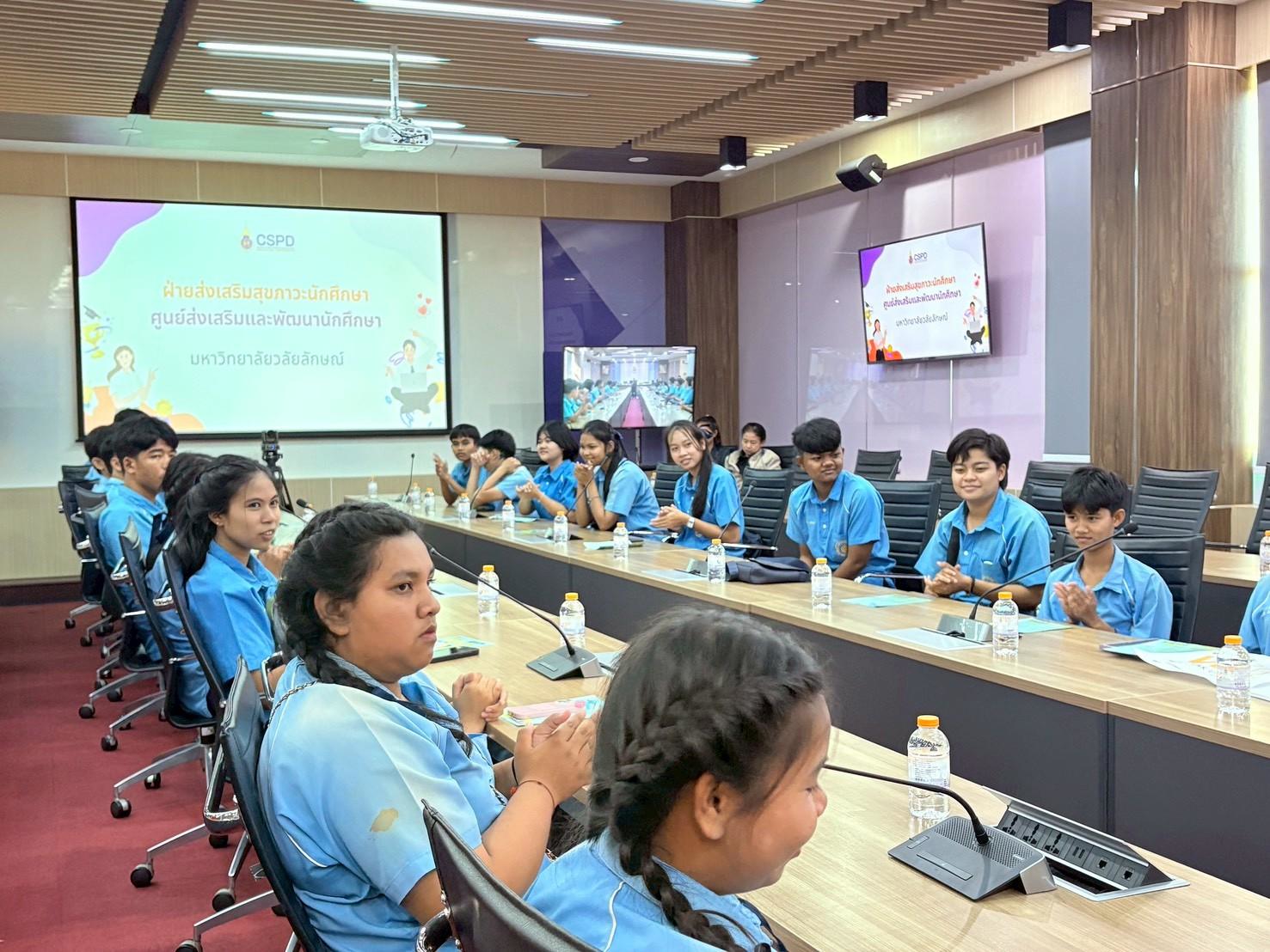 เมื่อวันที่ 23 มกราคม 2569 เวลา 09.00-12.00 น. นางสาวปิยวรรณ คงอินทร์ งานทุนการศึกษา เป็นตัวแทนให้ข้อมูลด้านทุนการศึกษา และบริการของฝ่ายส่งเสริมสุขภาวะนักศึกษา ศูนย์ส่งเสริมและพัฒนานักศึกษา แก่คณะครูและนักเรียนโรงเรียนท่าเฟืองวิทยา จังหวัดสุราษฎร์ธานี จำนวนประมาณ 50 คน ซึ่งเดินทางมาศึกษาเรียนรู้และเยี่ยมชมมหาวิทยาลัยวลัยลักษณ์ ณ ห้องประชุมเขาหลวง ชั้น 2 อาคารสหกิจศึกษา มหาวิทยาลัยวลัยลักษณ์