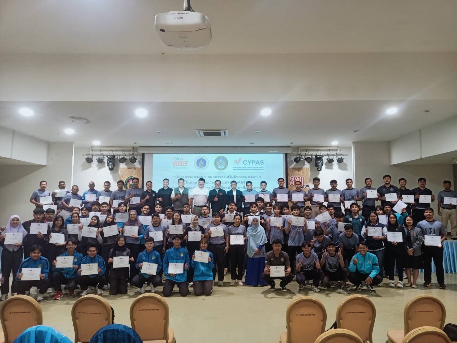 เมื่อวันที่ 22 มกราคม 2569 ศูนย์ส่งเสริมและพัฒนานักศึกษา ร่วมกับสำนักวิชาแพทยศาสตร์และ สำนักวิชาศึกษาศาสตร์ ได้นำบุคลากรและนักศึกษาเข้าร่วมโครงการอบรมขยายผลการส่งเสริมกิจกรรมทางกายในกลุ่มเด็กวัยเรียนและเยาวชน (PESS) ณ มหาวิทยาลัยราชภัฎสงขลา วิทยาเขตสตูล จังหวัดสตูลโดยมีวัตถุประสงค์เพื่อให้นักศึกษามีการเรียนรู้จัดการเรียนรู้วิชาพลศึกษาและการออกกำลังกายที่มีคุณภาพ (Quality Physical Education : (QPE) เพื่อเพิ่มระดับกิจกรรมทางกายในกลุ่มเด็กและเยาวชนในแต่ละกลุ่มอายุให้เป็นไปตามที่องค์การอนามัยโลกแนะนำตามแนวคิดพลศึกษาที่มีคุณภาพ (QPE) โดยใช้แนวทาง “Whole-of-School Approach to Physical Activity” เน้นการบูรณาการกิจกรรมทางกายเข้า กับชีวิตประจำวันของนักเรียนในทุกช่วงเวลาไม่จำกัดเฉพาะชั่วโมงเรียนพลศึกษาเท่านั้น โดยมีเป้าหมายเพื่อส่งเสริมให้นักเรียนมีการเคลื่อนไหวร่างกายอย่างต่อเนื่องและหลากหลาย
