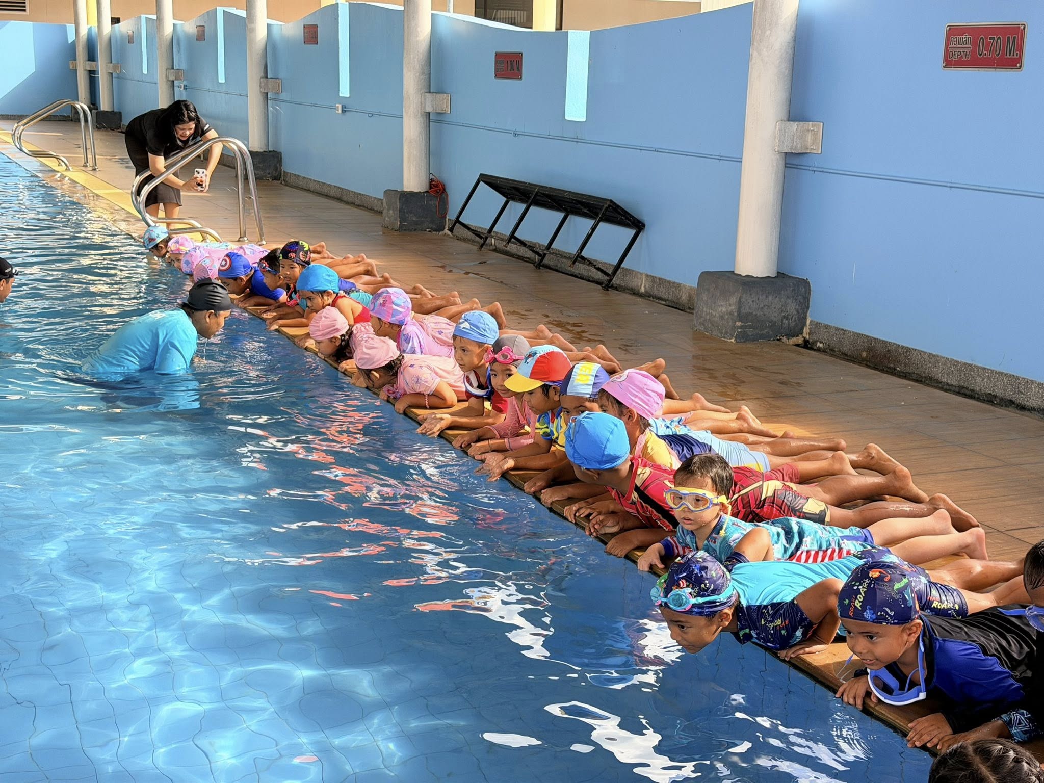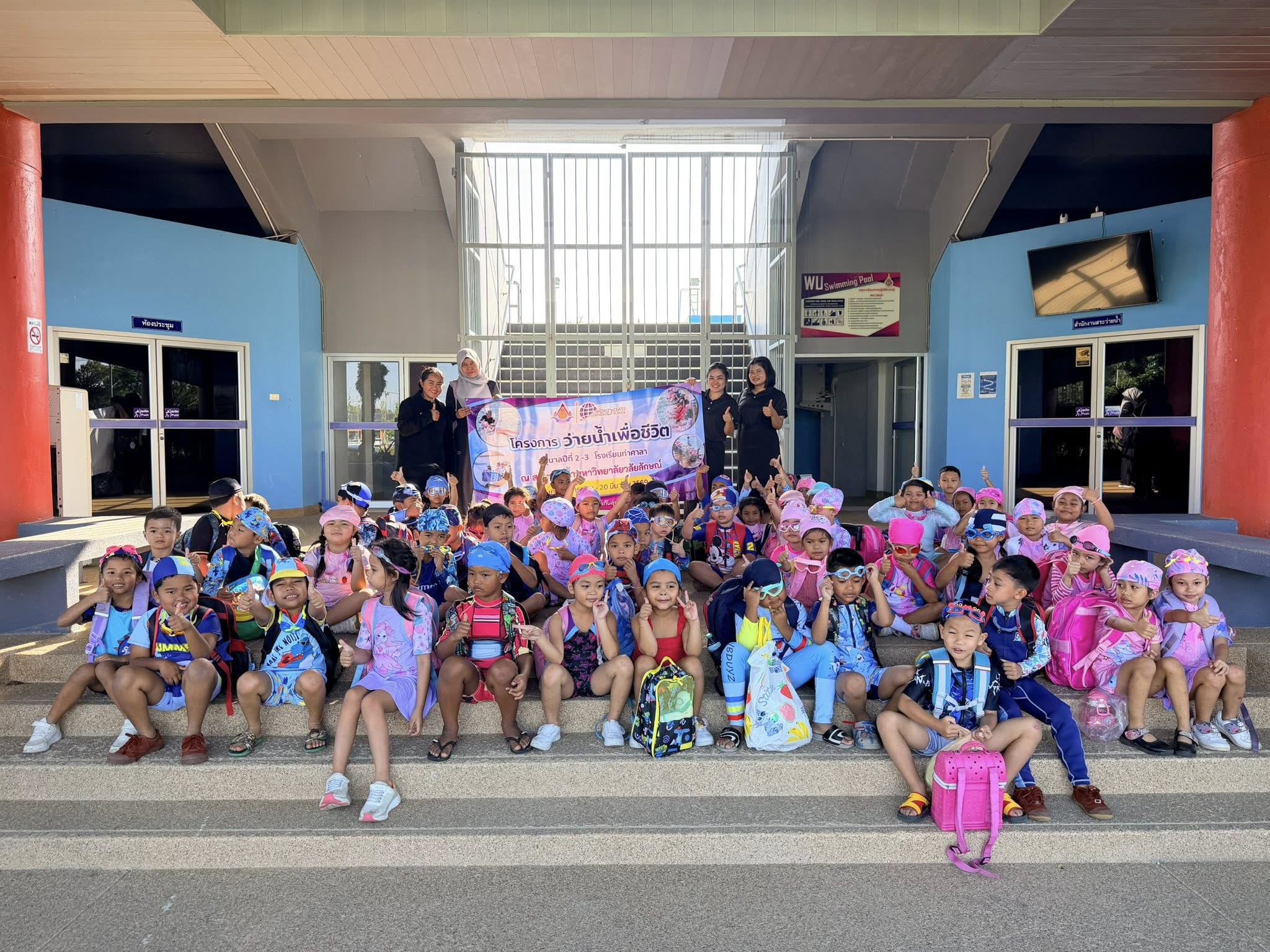 ศูนย์ส่งเสริมและพัฒนานักศึกษาร่วมกับ โรงเรียนปทุมานุกูล จัดโครงการบริการวิชาการ ว่ายน้ำสำหับเด็กปฐมวัย โดยมีวัตถุประสงค์หลักเพื่อ สร้างทักษะการเอาตัวรอดจากการจมน้ำ ปูพื้นฐานการเคลื่อนไหวในน้ำที่ถูกต้อง ส่งเสริมพัฒนาการร่างกายทุกส่วนให้แข็งแรง (กล้ามเนื้อมัดใหญ่-เล็ก) กระตุ้นสมองและสมาธิ เสริมสร้างความมั่นใจ ความกล้าแสดงออก และสร้างทัศนคติที่ดีต่อการออกกำลังกายตั้งแต่ยังเล็ก ระหว่างวันที่ 28 มกราคม -27 กุมภาพันธ์ 2569 โดยมีนักเรียนเข้าร่วมจำนวน 66 คน โดยแบ่งออกเป็น 3 กลุ่ม เพื่อความปลอดภัยในการเรียน