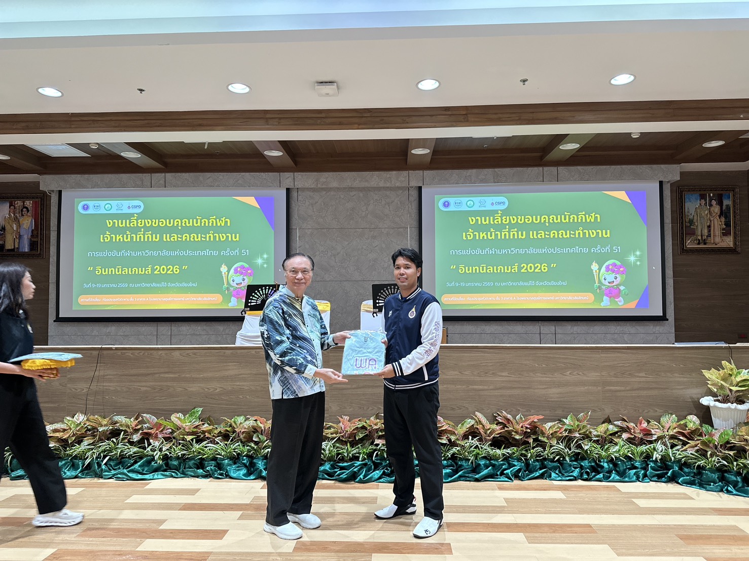 มหาวิทยาลัยวลัยลักษณ์ จัดงานเลี้ยงขอบคุณและแสดงความยินดีอย่างสมเกียรติแก่เหล่านักกีฬา ผู้จัดการทีม ผู้ฝึกสอน และคณะทำงานทุกคน ในโอกาสคว้าชัยจากศึกกีฬามหาวิทยาลัยแห่งประเทศไทย ครั้งที่ 51 “อินทนิลเกมส์” ณ มหาวิทยาลัยแม่โจ้