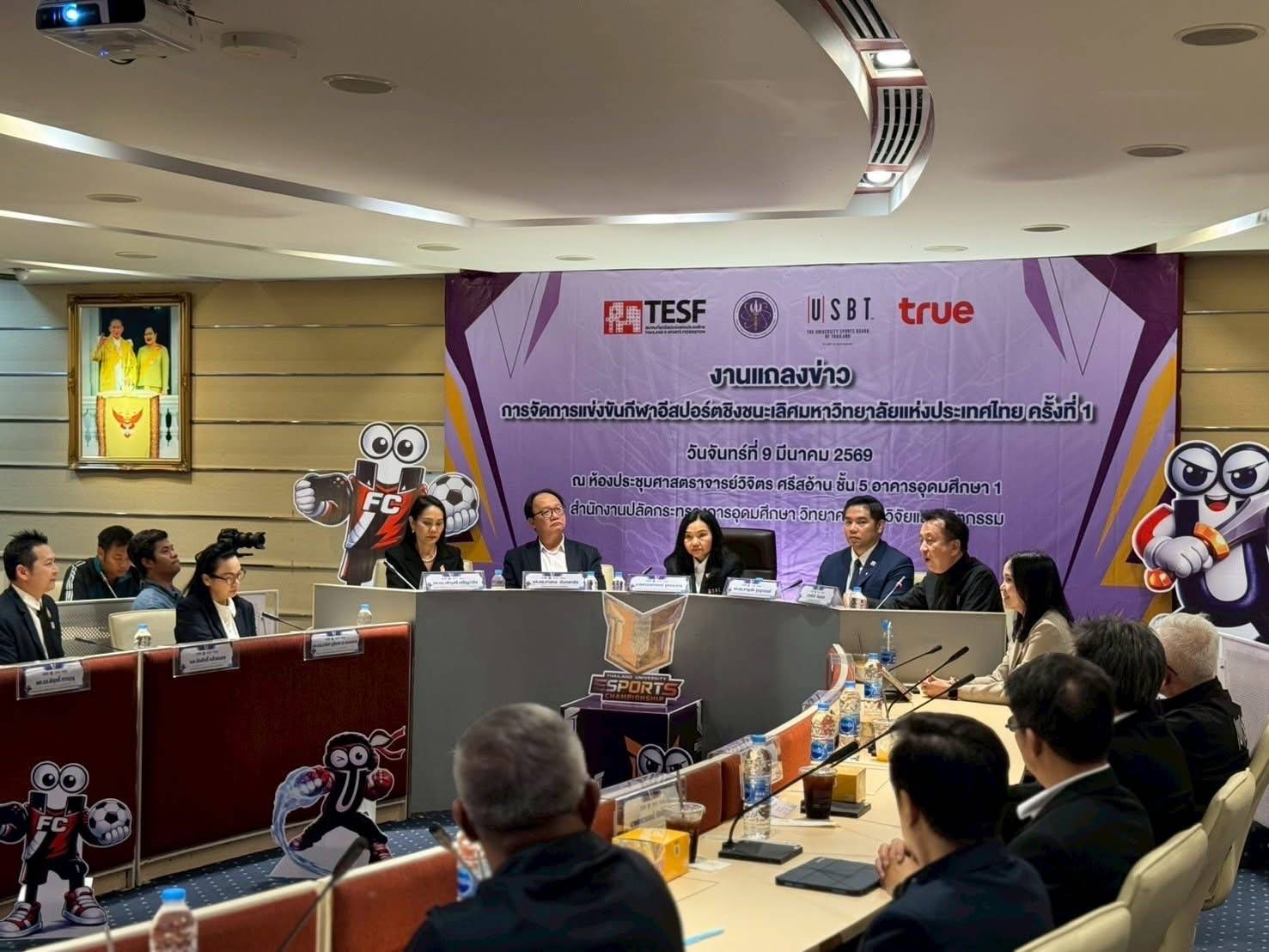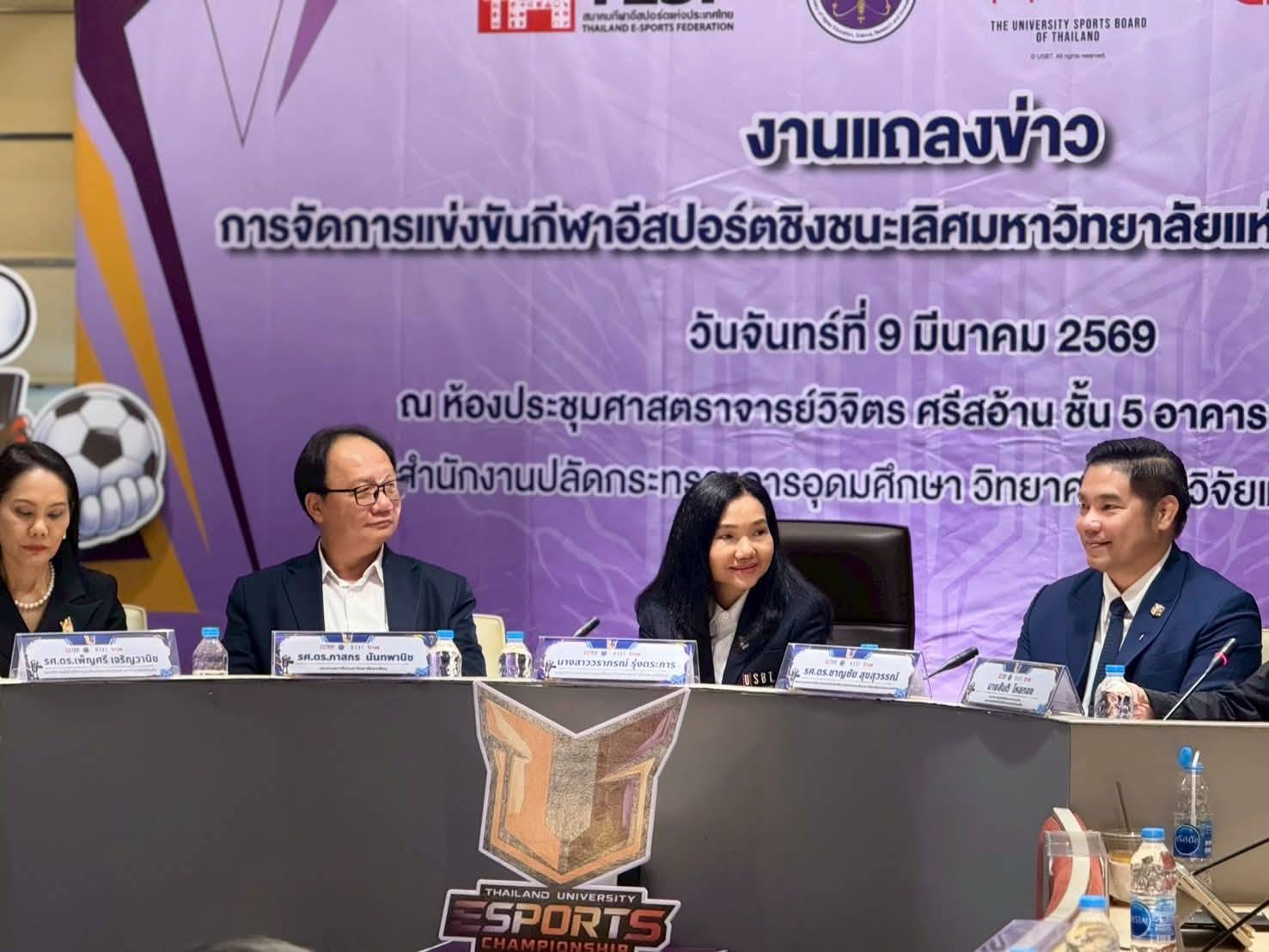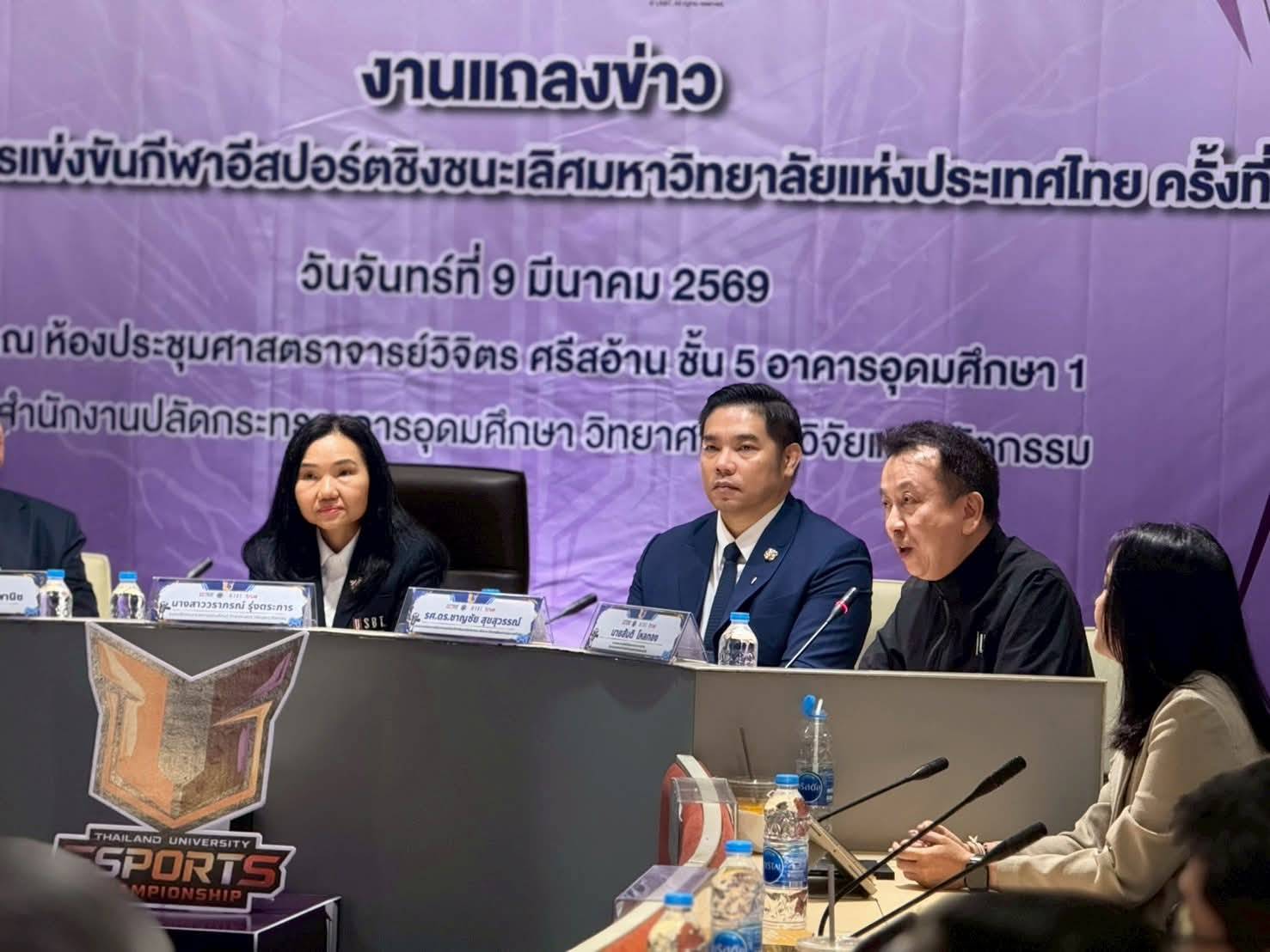 การจัดแถลงข่าวความคืบหน้าการแข่งขัน กีฬาอีสปอร์ตชิงชนะเลิศมหาวิทยาลัยแห่งประเทศไทย ครั้งที่ 1 ในวันที่ 9 มีนาคม 2569 เวลา 10.00 น. ณ ห้องประชุมศาสตราจารย์วิจิตร ศรีสอ้าน ชั้น 5 อาคารอุดมศึกษา 1 สำนักงานปลัดกระทรวงการอุดมศึกษา วิทยาศาสตร์ วิจัยและนวัตกรรม