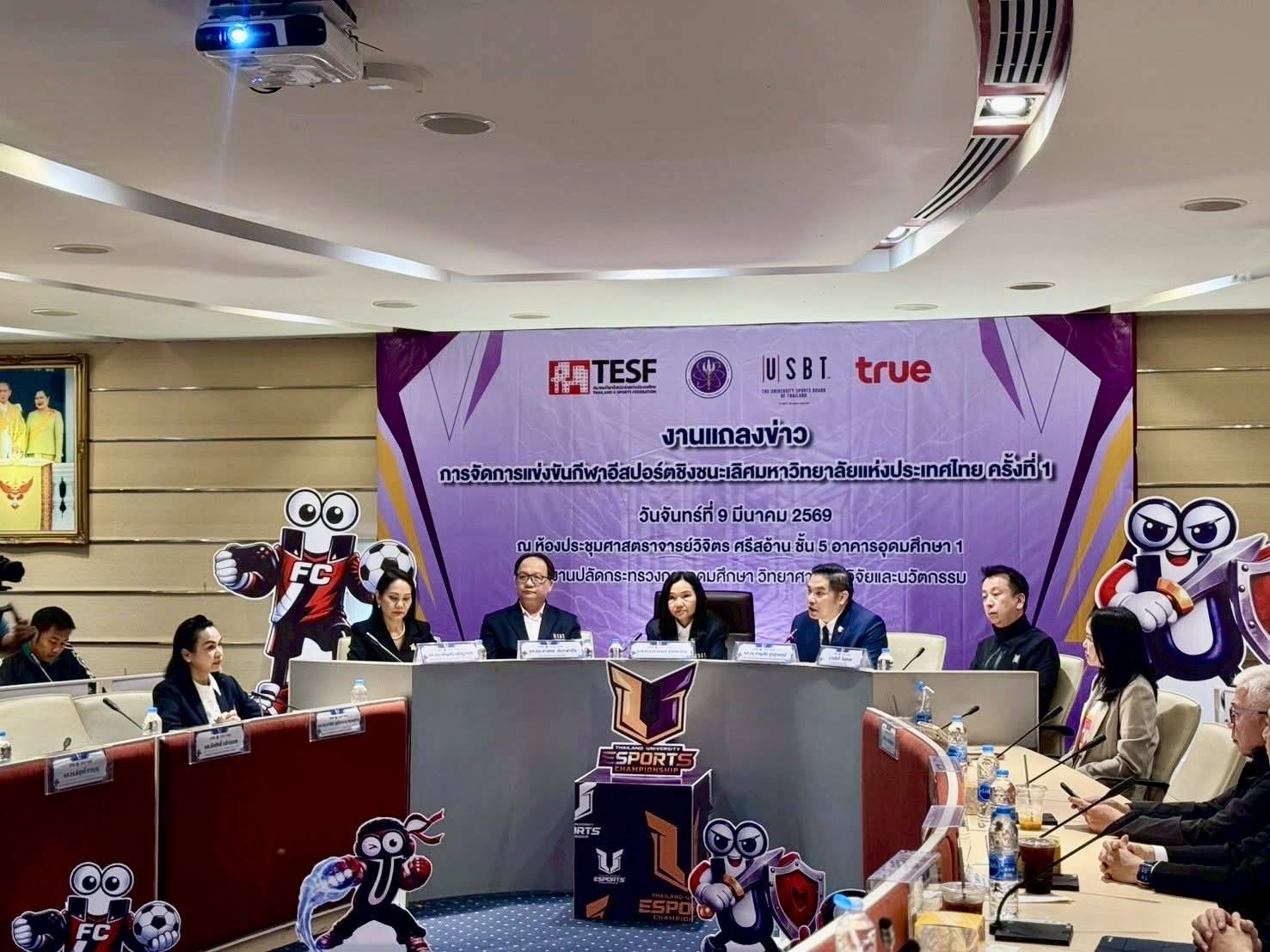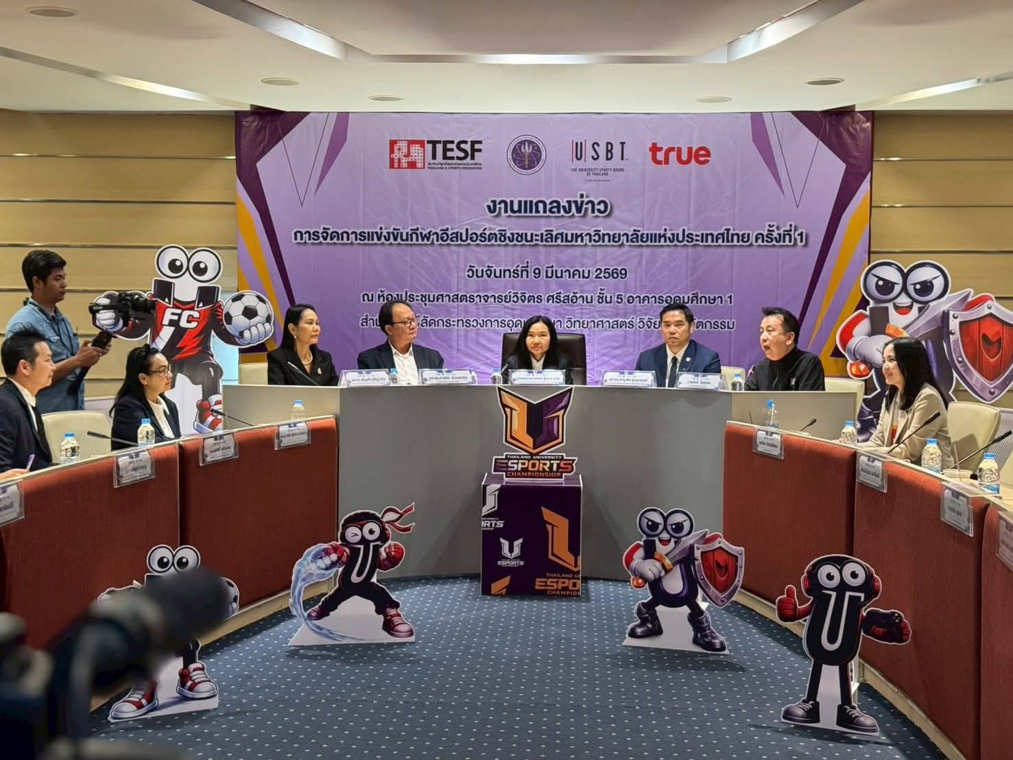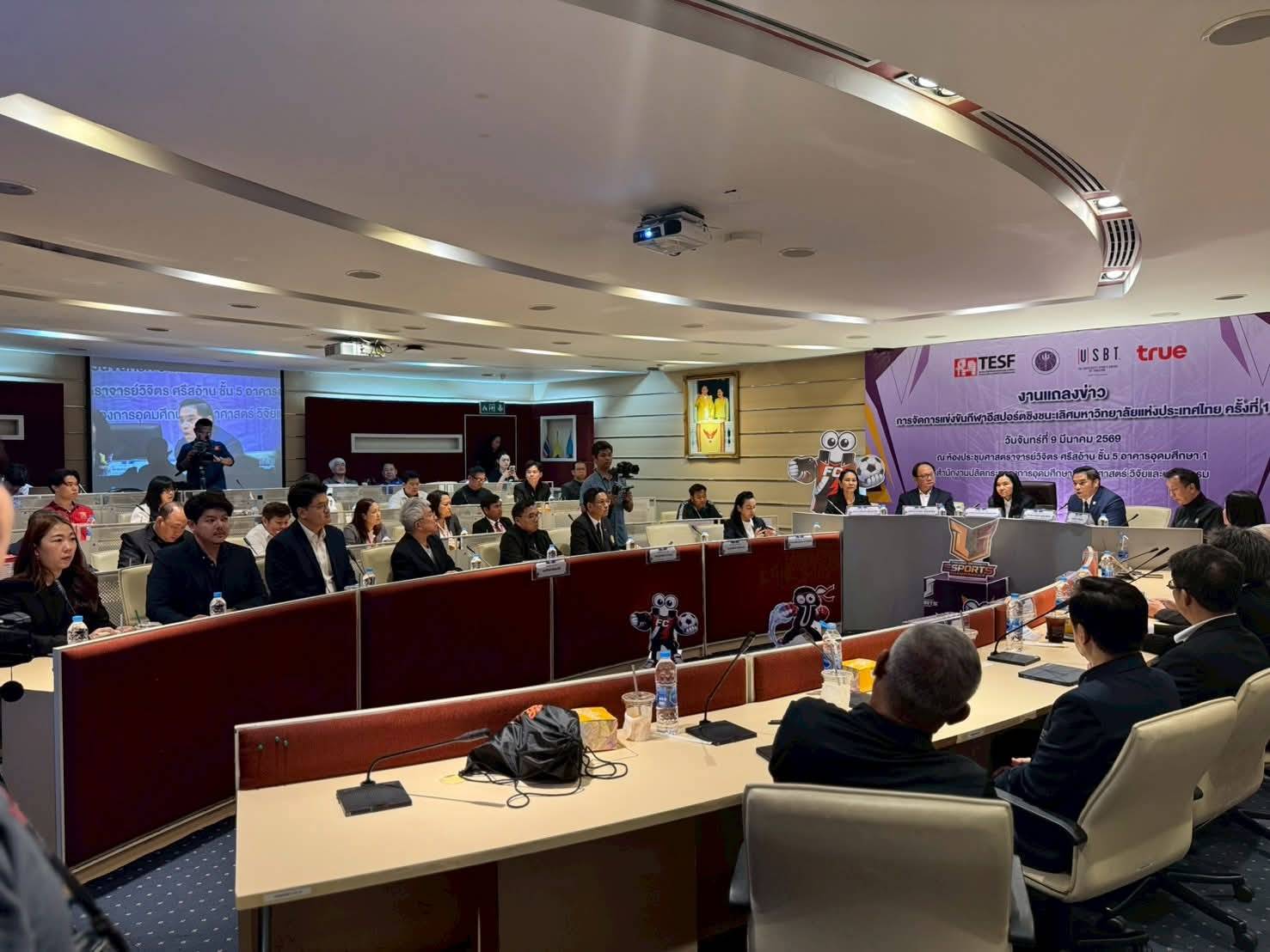 การจัดแถลงข่าวความคืบหน้าการแข่งขัน กีฬาอีสปอร์ตชิงชนะเลิศมหาวิทยาลัยแห่งประเทศไทย ครั้งที่ 1 ในวันที่ 9 มีนาคม 2569 เวลา 10.00 น. ณ ห้องประชุมศาสตราจารย์วิจิตร ศรีสอ้าน ชั้น 5 อาคารอุดมศึกษา 1 สำนักงานปลัดกระทรวงการอุดมศึกษา วิทยาศาสตร์ วิจัยและนวัตกรรม