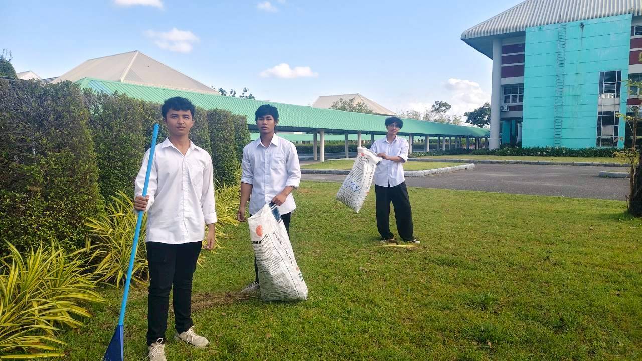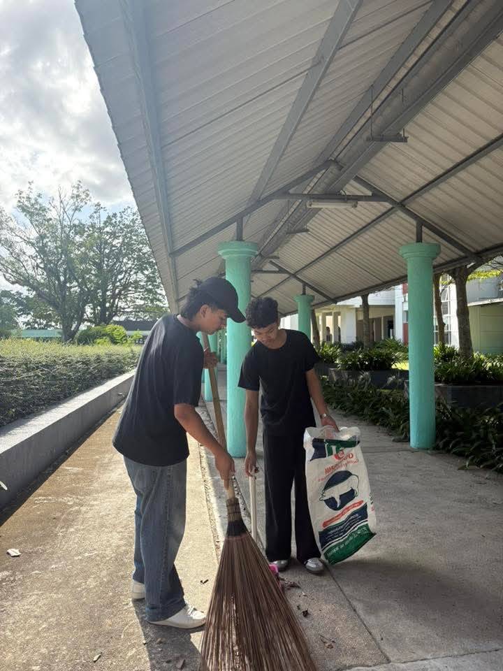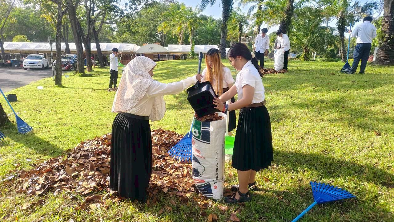 นักศึกษาจิตอาสา ม.วลัยลักษณ์ทำความดี สืบสานปณิธาน “พระผู้ทรงเป็นแม่และครูแห่งแผ่นดิน” เก็บขยะพื้นที่รายรอบอาคารเรียนรวม และอาคารไทยบุรี