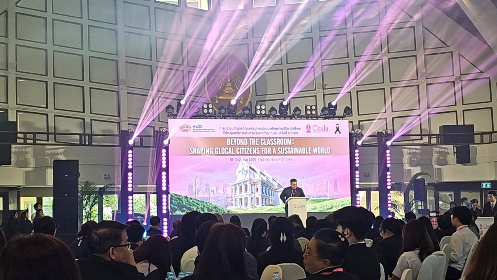 เมื่อวันที่ 18-19 มีนาคม 2569 ผศ.ดร.มาริสา ภูมิภาค ณ หนองคาย ผู้อำนวยการศูนย์ส่งเสริมและพัฒนา พร้อมด้วยหัวหน้าฝ่ายงาน และผู้นำองค์กรนักศึกษา เข้าร่วมประชุมสัญจรคณะกรรมการพัฒนาศักยภาพนิสิต นักศึกษา ทปอ. ครั้งที่ 1/2569 ณ จุฬาลงกรณ์มหาวิทยาลัย ภายใต้หัวข้อ “Beyond the classroom: shaping glocal citizens for a sustainable world” มุ่งเน้นการพัฒนานักศึกษาในมิติ “วิชาการควบคู่วิชาชีวิต” เพื่อการดำรงตนในโลกที่เปลี่ยนแปลง โดยแลกเปลี่ยนเรียนรู้ผ่าน 3 ฐานกิจกรรมหลัก ได้แก่ Glocalization and wisdom Holistic well-being และ Philanthropic spirit ทั้งนี้ มีเครือข่ายผู้นำนักศึกษากว่า 300 คน จาก 26 สถาบันเข้าร่วม ให้นักศึกษาสามารถประยุกต์ใช้ความรู้ในทุกศาสตร์ เป็น road map ในการพัฒนานักศึกษา เพื่อสร้างรากฐานการพัฒนาศักยภาพนักศึกษาจากระดับท้องถิ่นสู่ระดับสากล นำไปสู่การเปลี่ยนแปลงทางสังคมที่ยั่งยืนต่อไป
