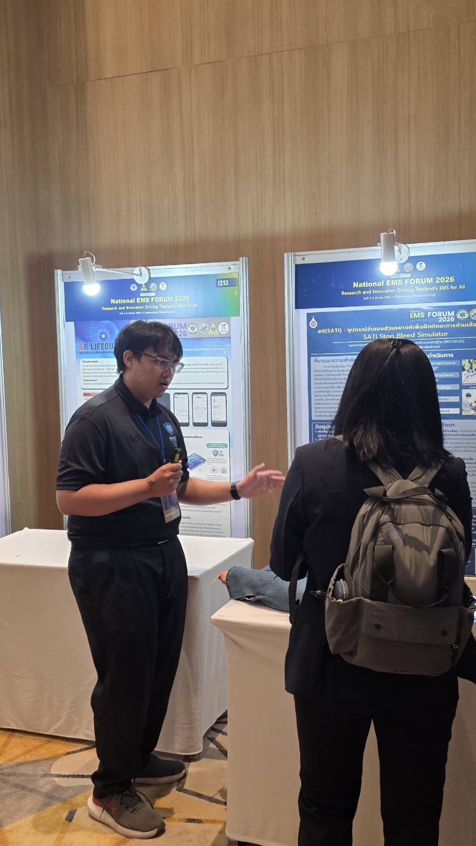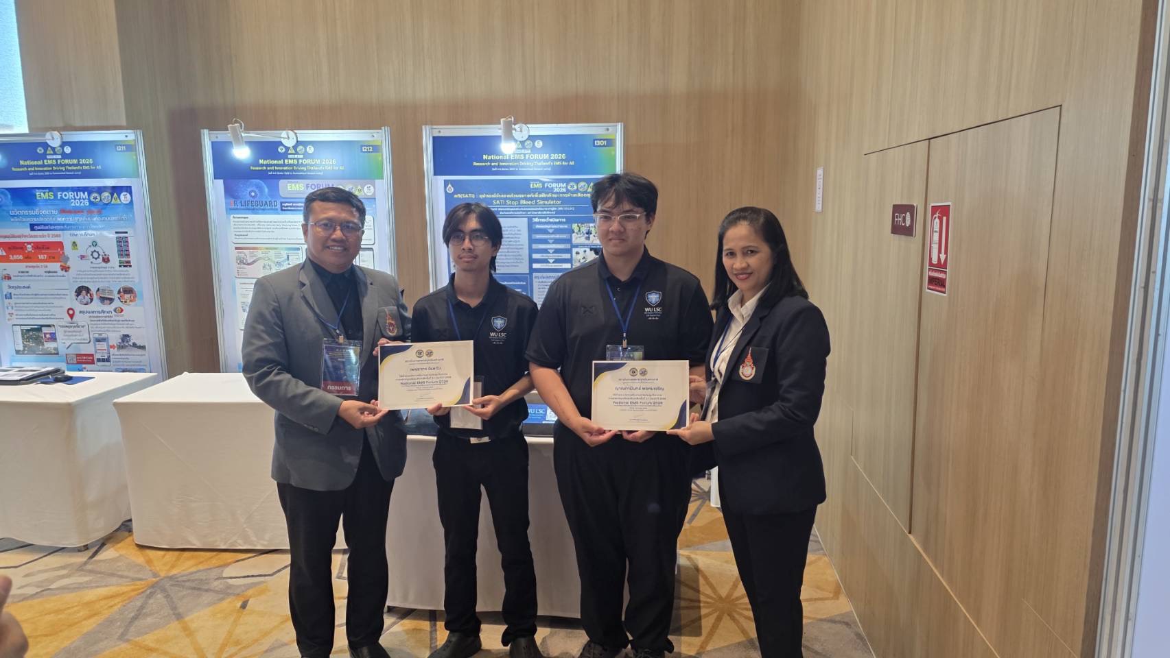 นายเพชรากร ฉิมแก้ว จาก สำนักวิชาสารสนเทศศาสตร์ และ นายญาณกามินทร์ พรหมเจริญ จาก สำนักวิชาสหเวชศาสตร์ ในโอกาสได้รับ รางวัลรองชนะเลิศอันดับ ๒ จากการนำเสนอผลงานวิชาการประเภทโปสเตอร์นวัตกรรม/สิ่งประดิษฐ์ ภายใต้หัวข้อ “การวิจัยและนวัตกรรม ขับเคลื่อนการแพทย์ฉุกเฉินไทยเพื่อทุกชีวิต” ในการประชุมวิชาการการแพทย์ฉุกเฉินระดับชาติ ครั้งที่ 17 (National EMS Forum 2026)