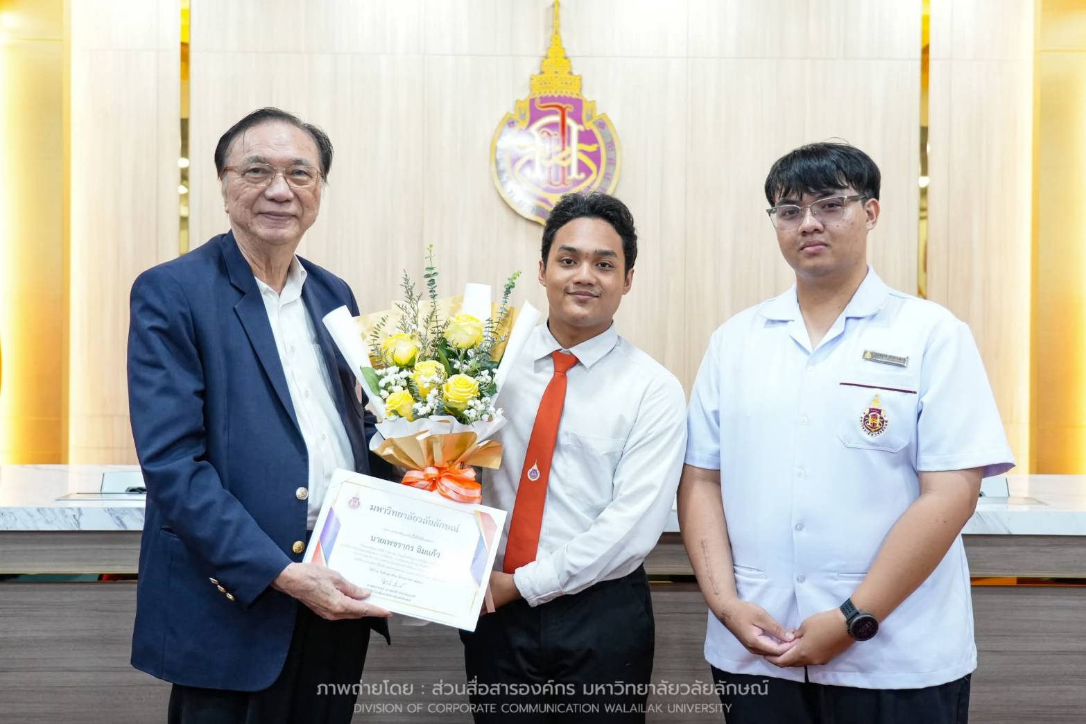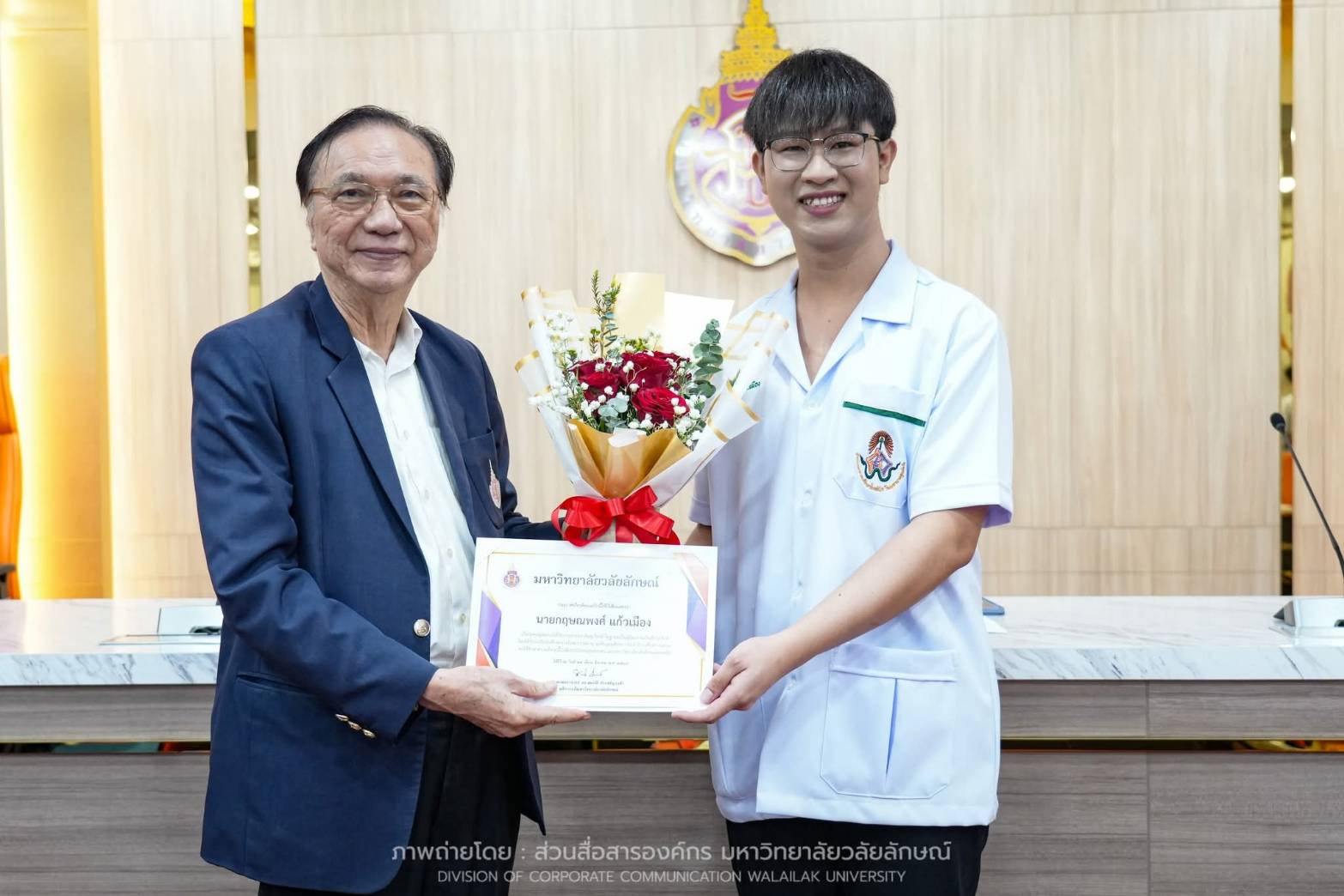 นายกฤษณพงศ์ แก้วเมือง นักศึกษาชั้นปีที่ 3 (รหัสนักศึกษา 66113671) สำนักวิชาแพทยศาสตร์ ในโอกาสเข้ารับ รางวัลนักศึกษารางวัลพระราชทาน ระดับอุดมศึกษา ประจำปีการศึกษา 2567 ซึ่งถือเป็นรางวัลอันทรงเกียรติสูงสุดที่มอบให้แก่นักศึกษาที่มีผลการเรียนดีเด่น มีคุณธรรมจริยธรรม และบำเพ็ญประโยชน์ต่อสังคมอย่างประจักษ์ชัด