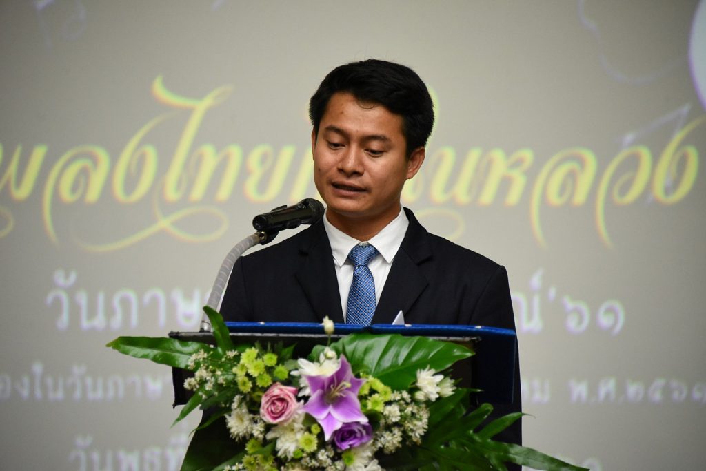 เมื่อวันที่ ๑๕ สิงหาคม ๒๕๖๑ ที่ผ่านมา อาศรมวัฒนธรรมวลัยลักษณ์ จัดงานวันภาษาไทยวลัยลักษณ์ ประจำปี พ.ศ.๒๕๖๑ เพื่อน้อมรำลึกถึงพระอัจฉริยภาพทางด้านภาษาและวรรณกรรมของพระบาทสมเด็จพระปรมินทรมหาภูมิพลอดุลยเดช สนองพระราชปณิธานในการอนุรักษ์ ส่งเสริมภาษาไทย โดยได้เชิญ คุณรัชนก ศรีโลพันธุ์ (ศิลปินเพลงลูกทุ่ง) คุณไข่ มาลีฮวนน่า (ศิลปินนักร้อง) และคุณกิตติศักดิ์ สายน้ำทิพย์ (ผู้เรียบเรียงเสียงประสานเพลงฟ้าร้องไห้) ร่วมเวทีเสวนา