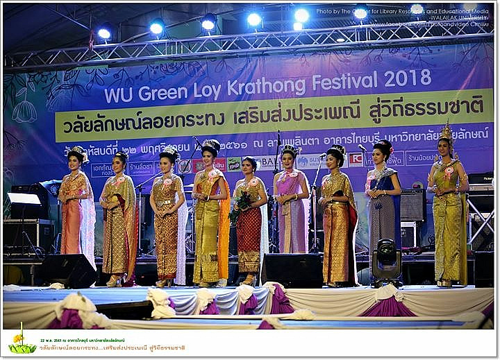 ภายในงานนอกจากมีการแสดงของนักศึกษาชมรมนาฏศิลป์ ชมรมดนตรีไทย และวงดนตรี WU Band ตลอดจนการออกร้านจำหน่ายสินค้าจากนักศึกษา และประชาชนทั่วไป ยังมีการเพิ่มสีสันของงานด้วยการจัดประกวดกระทงประเภทสวยงาม และประเภทความคิดสร้างสรรค์ การประกวดเทพีนพมาศ ประเภทบุคลากรและนักศึกษา การประกวด Miss Ladyboy