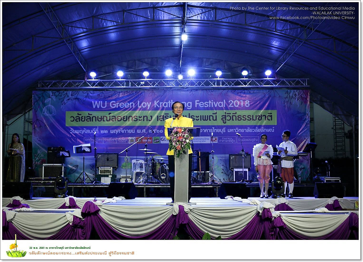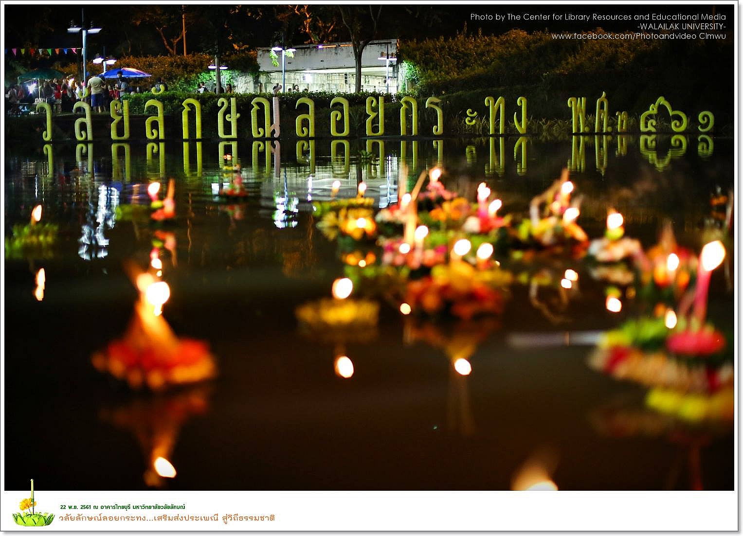 มหาวิทยาลัยวลัยลักษณ์ โดยอาศรมวัฒนธรรมวลัยลักษณ์ ร่วมกับส่วนกิจการนักศึกษา และองค์การบริหาร องค์การนักศึกษามหาวิทยาลัยวลัยลักษณ์ จัดงาน “วลัยลักษณ์ลอยกระทง เสริมส่งประเพณี สู่วิถีธรรมชาติ”เมื่อวันพฤหัสบดีที่ ๒๒ พฤศจิกายน ๒๕๖๑ บริเวณลานเพลินตา หน้าอาคารไทยบุรี มหาวิทยาลัยวลัยลักษณ์ เพื่อเป็นการสืบสานวัฒนธรรมประเพณีอันดีงามให้อยู่คู่สังคมไทย และสังคมชาวมหาวิทยาลัยวลัยลักษณ์ ตลอดจนเป็นการส่งเสริม ก่อให้เกิดความสัมพันธ์อันดีระหว่างชุมชนกับมหาวิทยาลัยวลัยลักษณ์