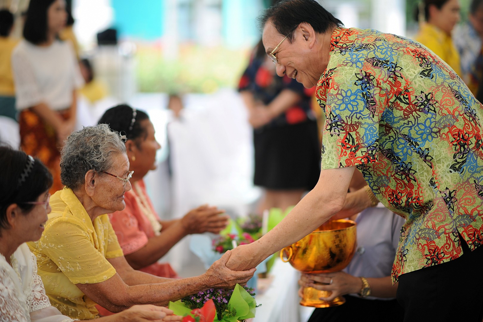รองศาสตราจารย์ ดร.สืบพงศ์ ธรรมชาติ รักษาการแทนผู้อำนวยการ อาศรมวัฒนธรรมวลัยลักษณ์ กล่าวว่า สงกรานต์เป็นประเพณีส่งท้ายปีเก่าและต้อนรับปีใหม่ของไทยซึ่งสืบทอดมาแต่โบราณ มหาวิทยาลัยวลัยลักษณ์พร้อมด้วยชุมชนรายรอบของเราจัดงานประเพณีรดน้ำขอพรผู้สูงอายุขึ้น โดยมีวัตถุประสงค์ที่สำคัญคือเพื่อสืบสานประเพณีอันดีงามของไทย ยกย่องผู้สูงอายุอันเป็นบุคคลสำคัญของชุมชน และสร้างความสัมพันธ์อันดี แสดงถึงความมีส่วนร่วมในเทศกาลปีใหม่ไทย ก่อเกิดความสามัคคีกลมเกลียวของคนในชุมชน ตลอดจนเป็นการอนุรักษ์และสืบสานศิลปะและวัฒนธรรม ในส่วนของประเพณีวันสงกรานต์ให้คงอยู่ตลอดไป