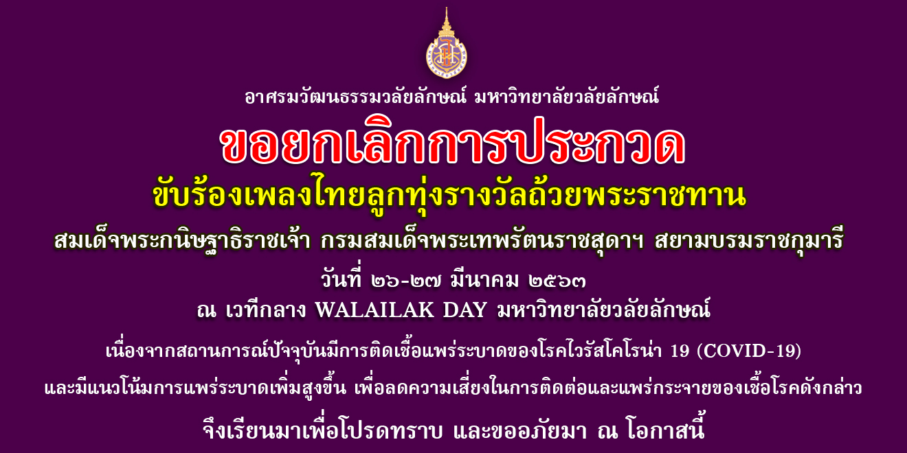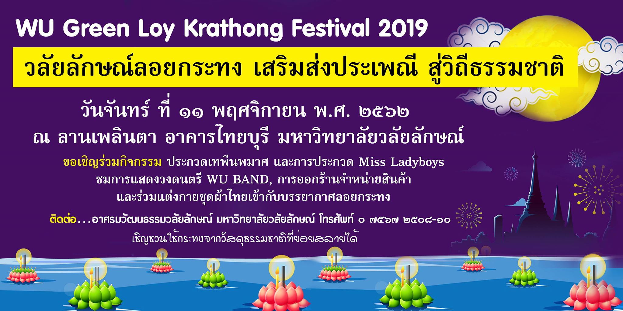 ขอเชิญร่วมงาน “วลัยลักษณ์ลอยกระทง เสริมส่งประเพณี สู่วิถีธรรมชาติ” ประจำปี ๒๕๖๒ อ่านต่อ » ตุลาคม 25, 2562