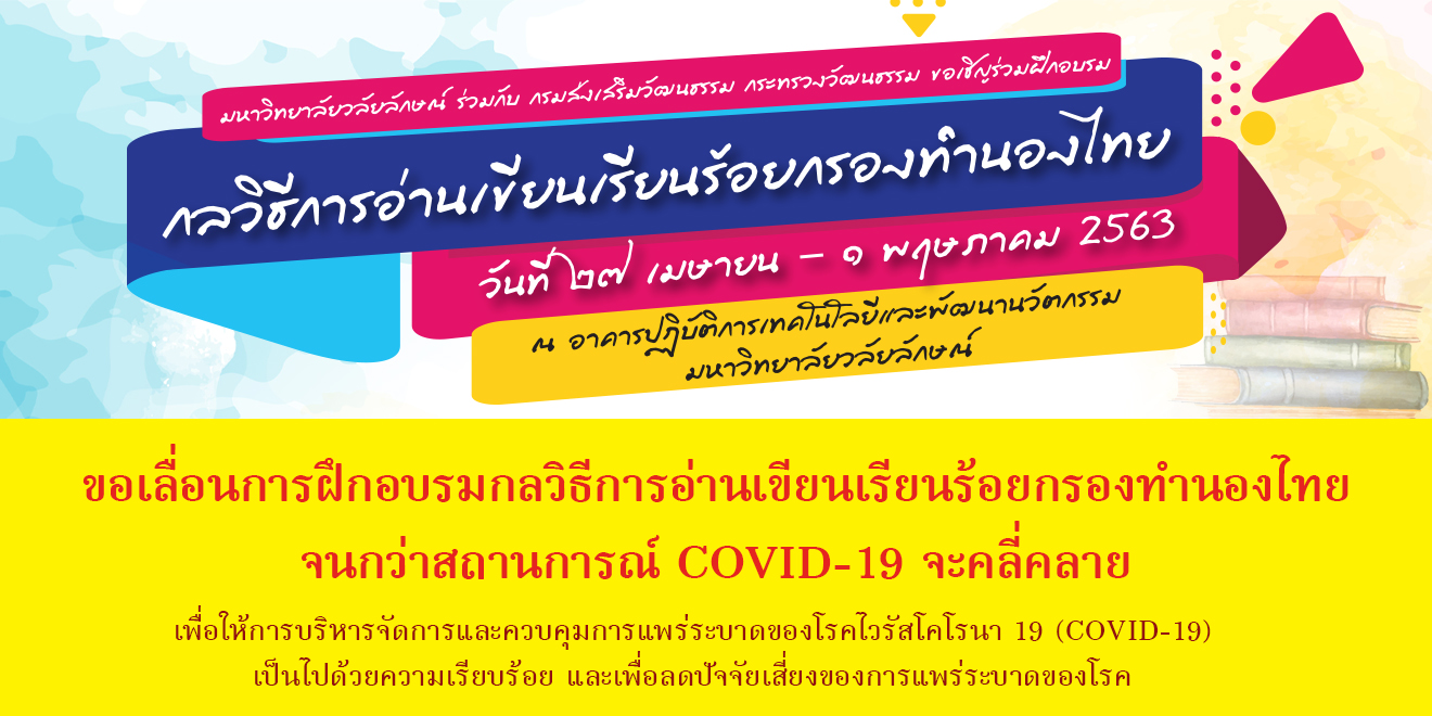 ขอเชิญเข้าร่วมโครงการหลักสูตรฝึกอบรมระยะสั้น “กลวิธีการอ่านเขียนเรียนร้อยกรองทำนองไทย” อ่านต่อ » กุมภาพันธ์ 17, 2563