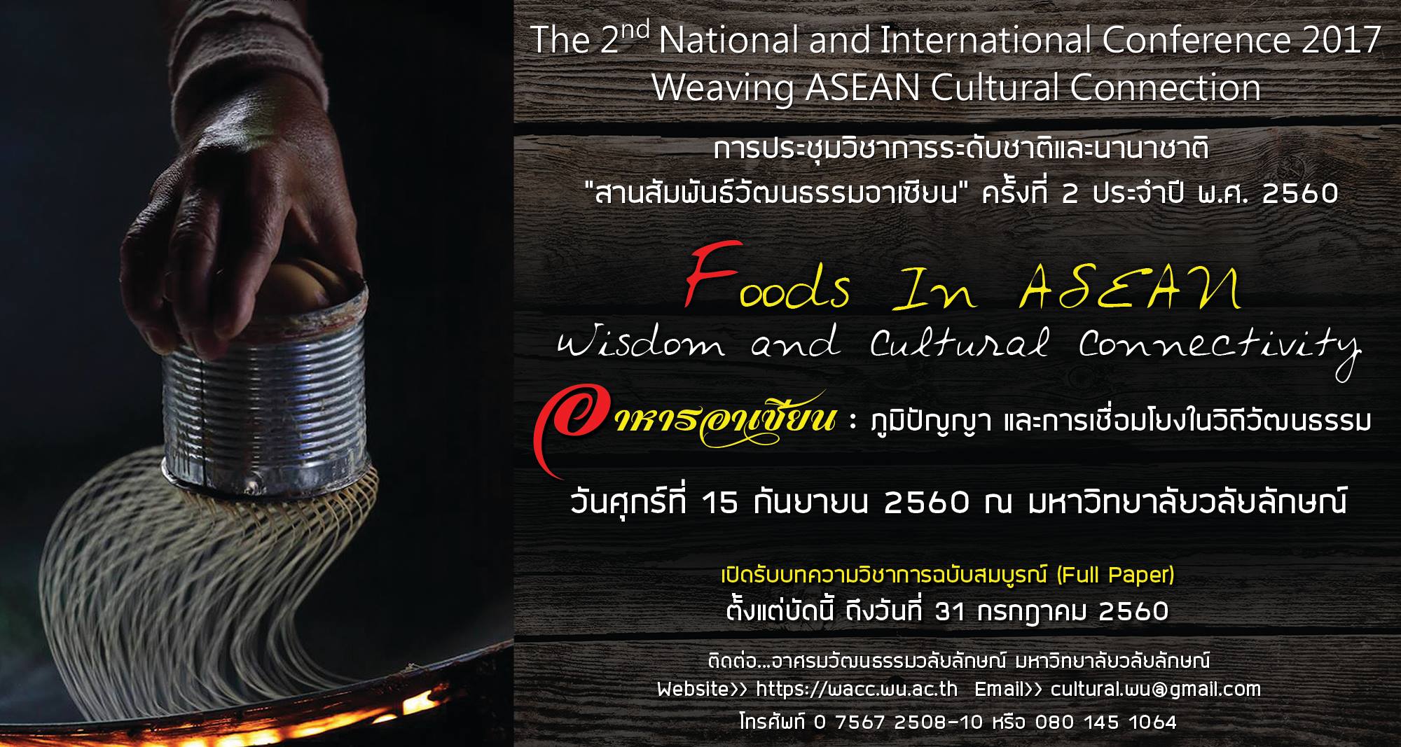 ขอเชิญร่วมงานการประชุมวิชาการระดับชาติและนานาชาติ “สานสัมพันธ์วัฒนธรรมอาเซียน” ครั้งที่ ๒ ขอเชิญร่วมงานการประชุมวิชาการระดับชาติและนานาชาติ “สานสัมพันธ์วัฒนธรรมอาเซียน” ครั้งที่ ๒ อ่านต่อ » มิถุนายน 23, 2560