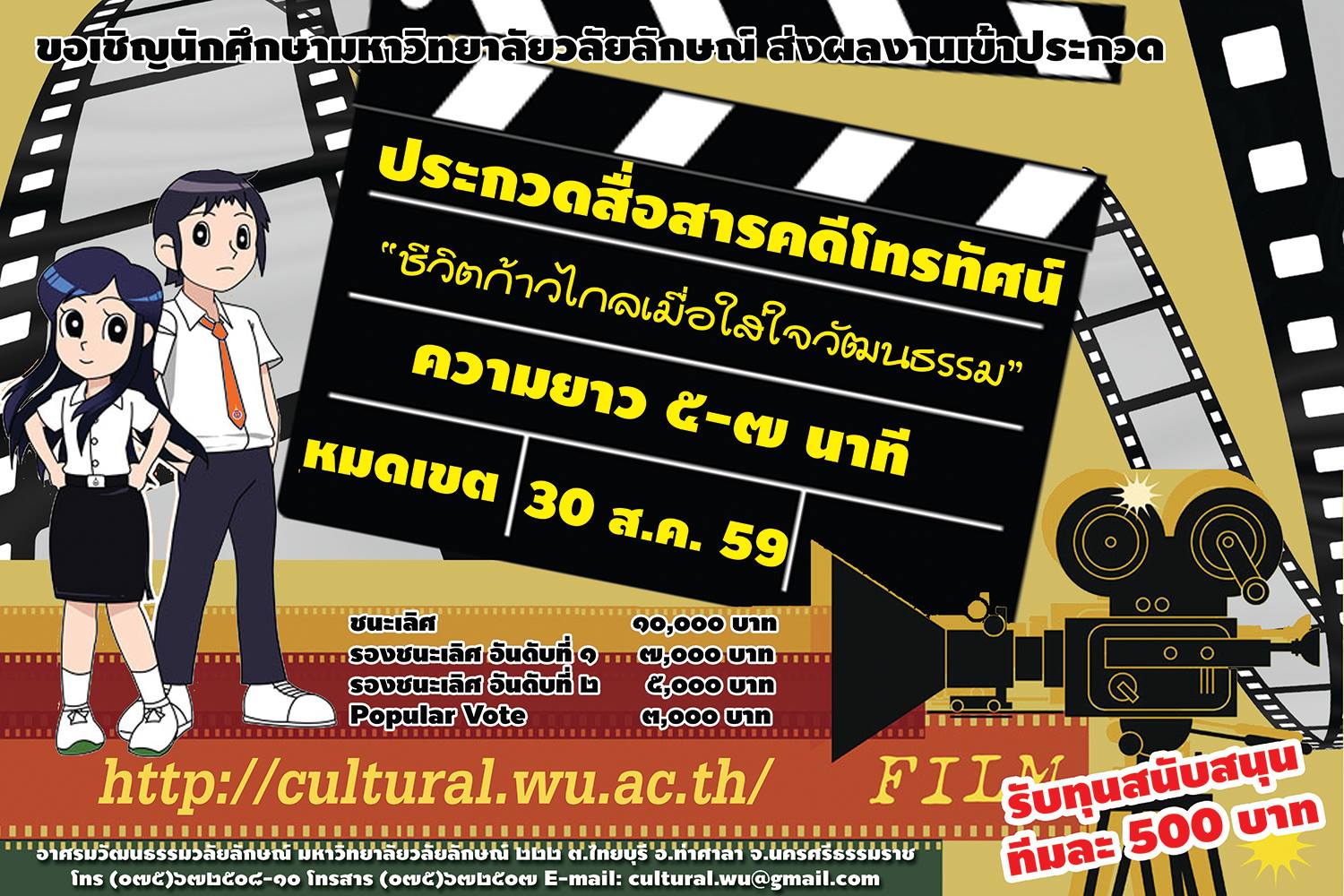 ขอเชิญประกวดสื่อสารคดีโทรทัศน์ ภายใต้หัวข้อ “ชีวิตก้าวไกลเมื่อใส่ใจวัฒนธรรม” อ่านต่อ » สิงหาคม 18, 2559