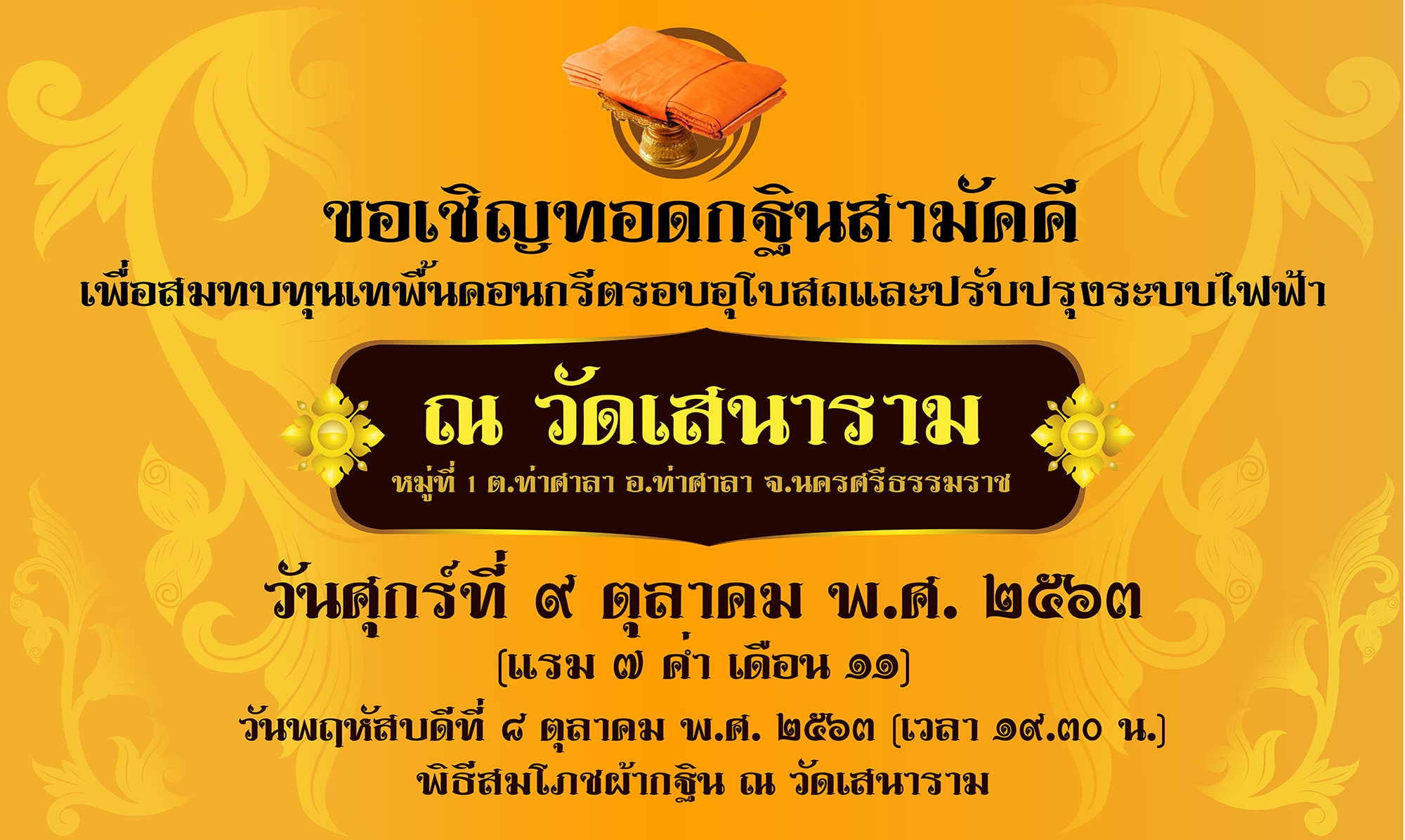 ขอเชิญชวนเข้าร่วมกิจกรรมถวายเทียนพรรษา ประจำปี พ.ศ. 2563 “ส่งเสริมประเพณีเข้าพรรษา ธำรงไว้ซึ่งพุทธศาสนา รักษาสืบสานวัฒนธรรมไทย” อ่านต่อ » มิถุนายน 29, 2563